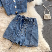 2022年滑走路サマースカートパンツレディースデニムセクシー半袖クロップトップとショーツ22点セット衣装 ショート ハーフスリーブ 夏物 ブルマー Abe37253559034