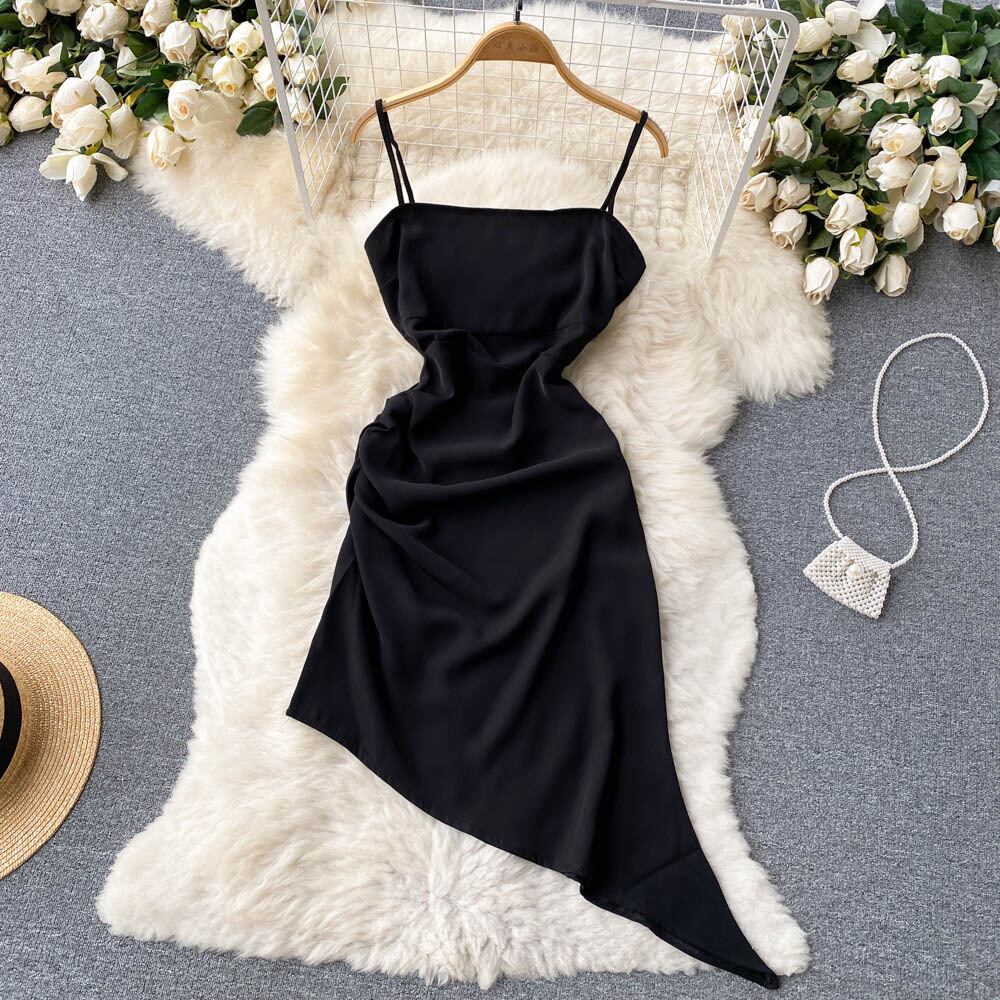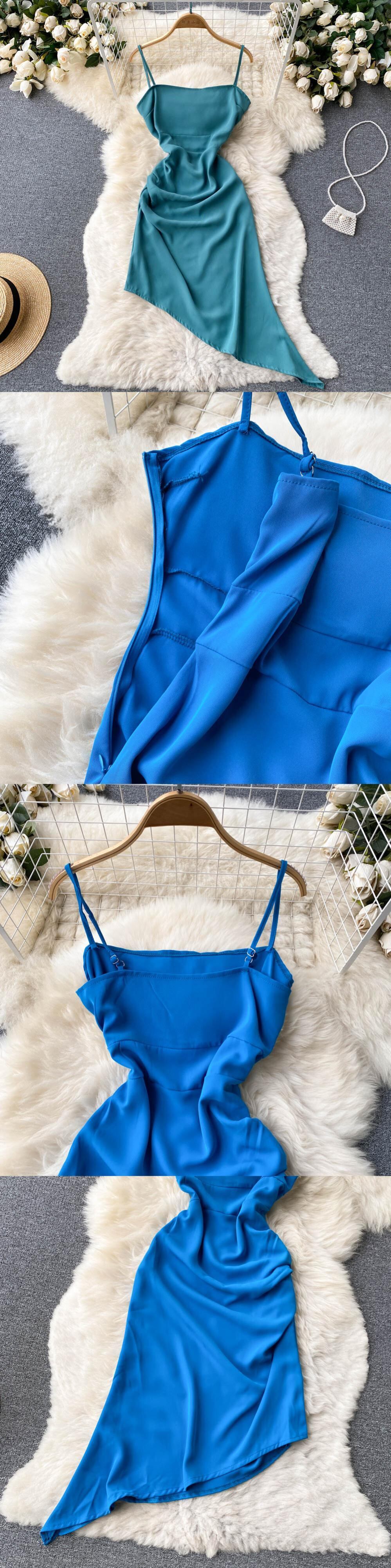 シャーリングサテンサマードレス巾着スパゲッティストラップカウルネックバックレスロングドレス女性パーティーセクシーなローブ 夏物 Abe37469060997