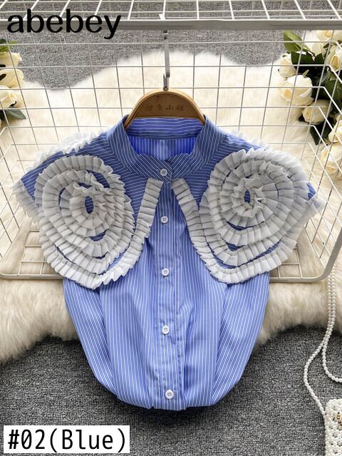 シックなプリーツの食用キノコ菌シングルブレストノースリーブシャツトップス夏のゆるいブラウス女性 サマー 夏物 Abe37023164080