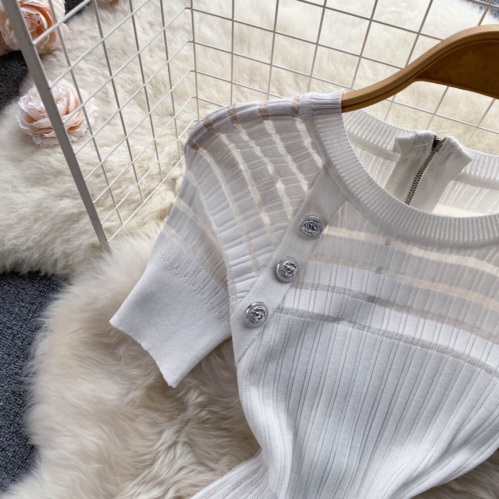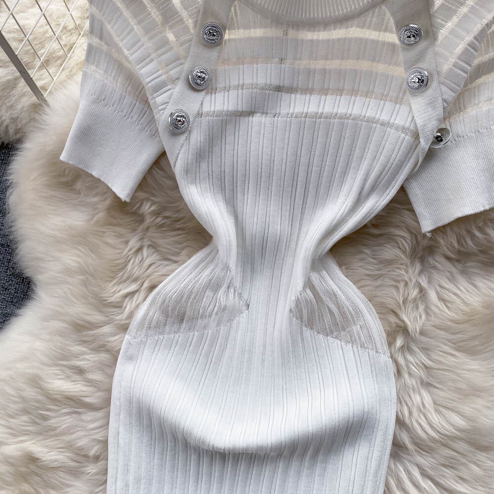 女性ニットペンシルドレスOネック半袖伸縮性スリムシースドレスサマーシックなストリートウェアショートドレス ハーフスリーブ エラスティック 夏物 Abe17001873615