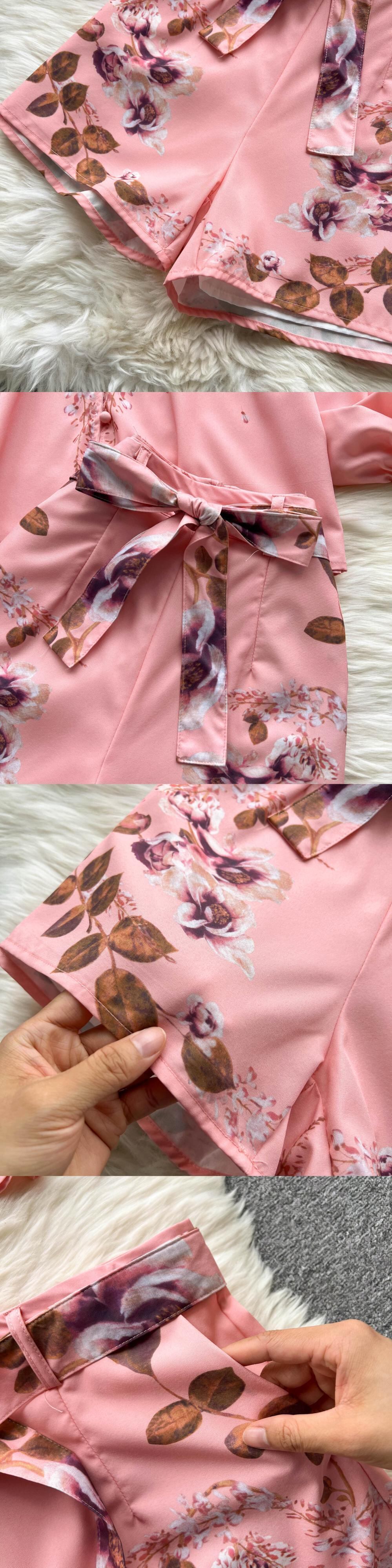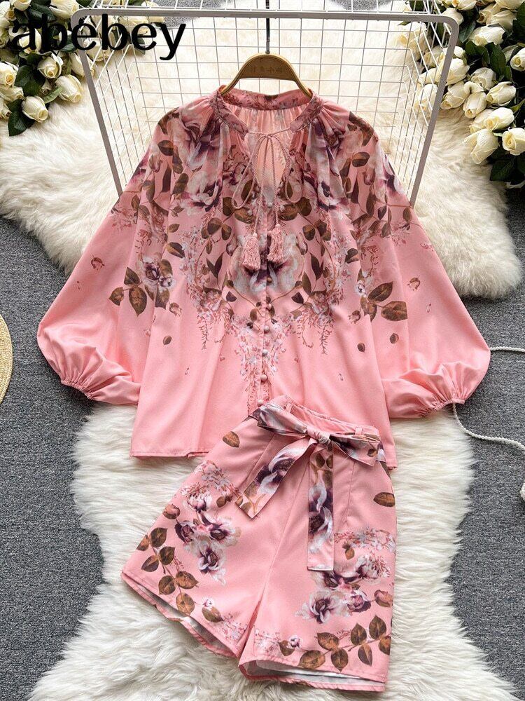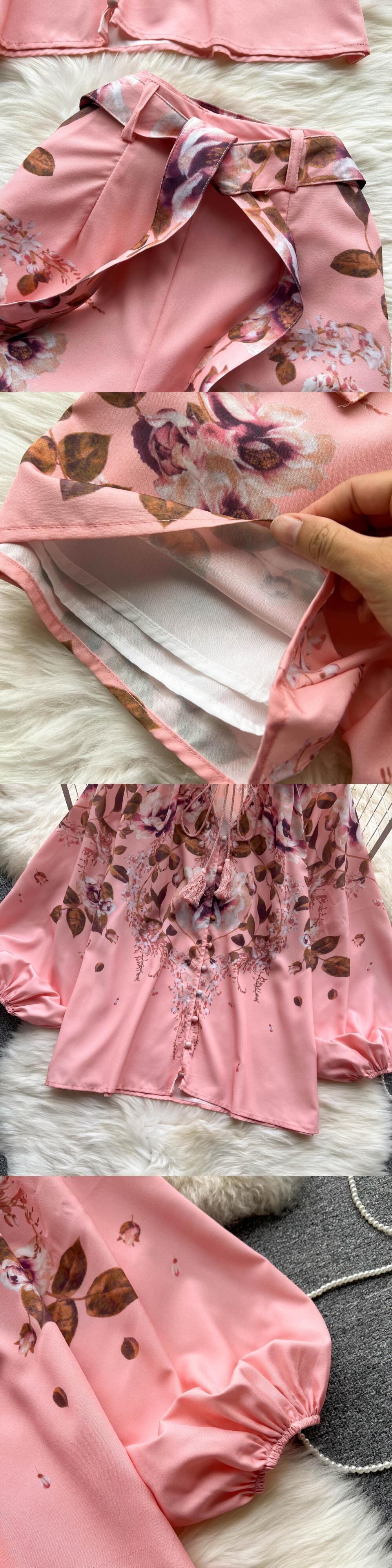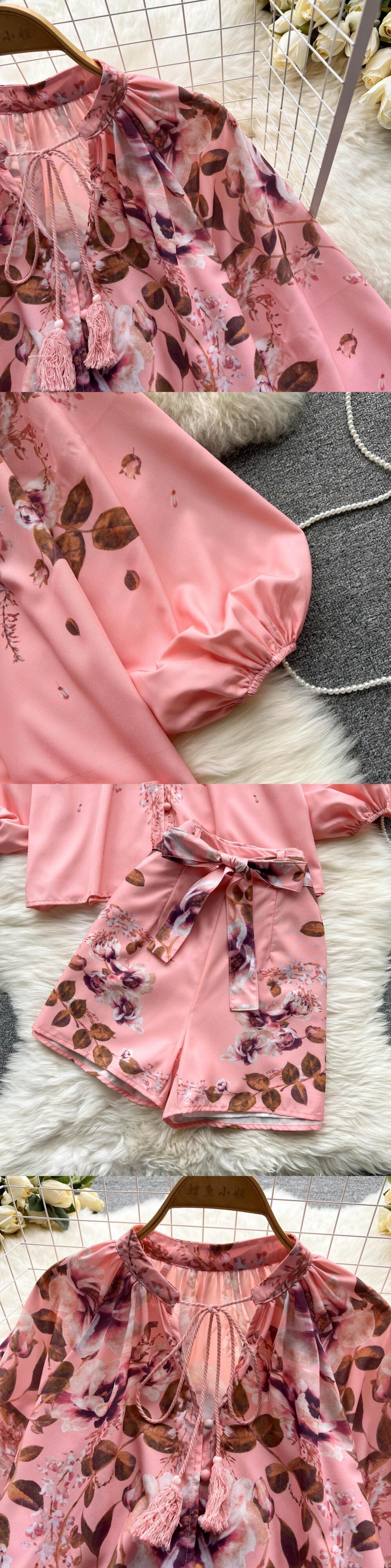 女性プリーツツーピースセットルーズロングスリーブブラウスとウエストワイドレッグショーツスーツ衣装 長袖 ブルマー ワイドパンツ Abe7213056627