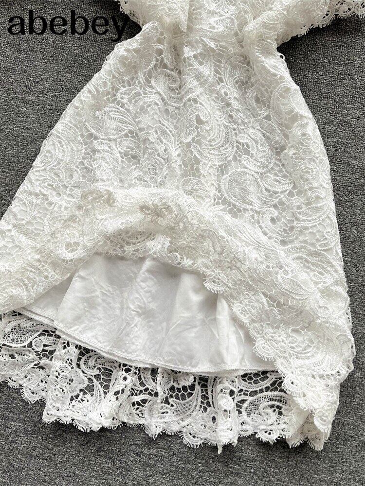 ロングシンプルソリッドホローアウトピュアコットンホリデースタイルウエストミッドカーフサマードレスNEWVestidos 夏物 ソリッドカラー Abe38744725344