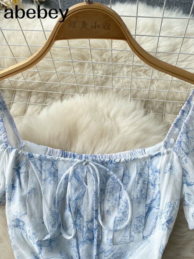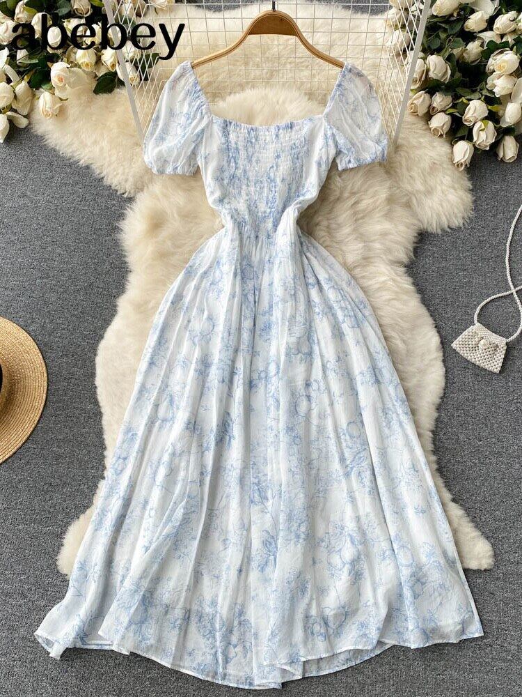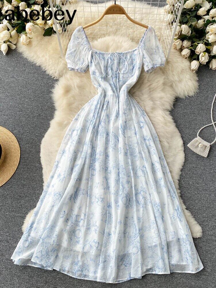 Vestidos Vintage Vintage PrintPuffSleeveサマービーチスウィートドレススクエアカラーフローラルマキシロングドレス2022フェスタ 大人ガーリー キュート カジュアル 夏物 花柄 スクウェア ビンテージ Abe15871949426