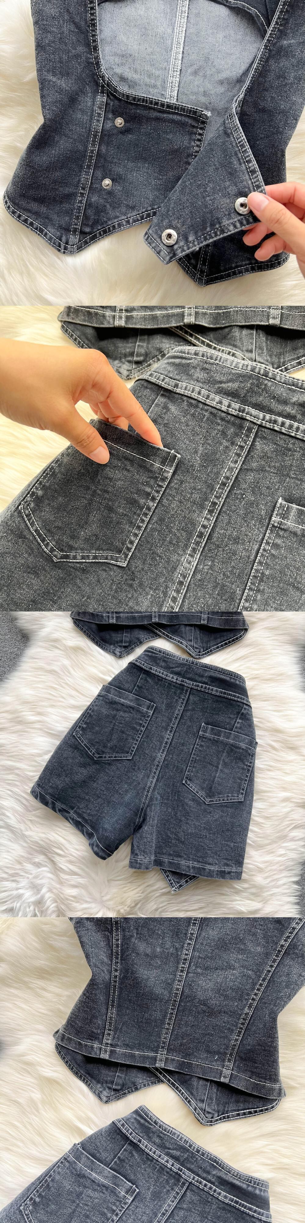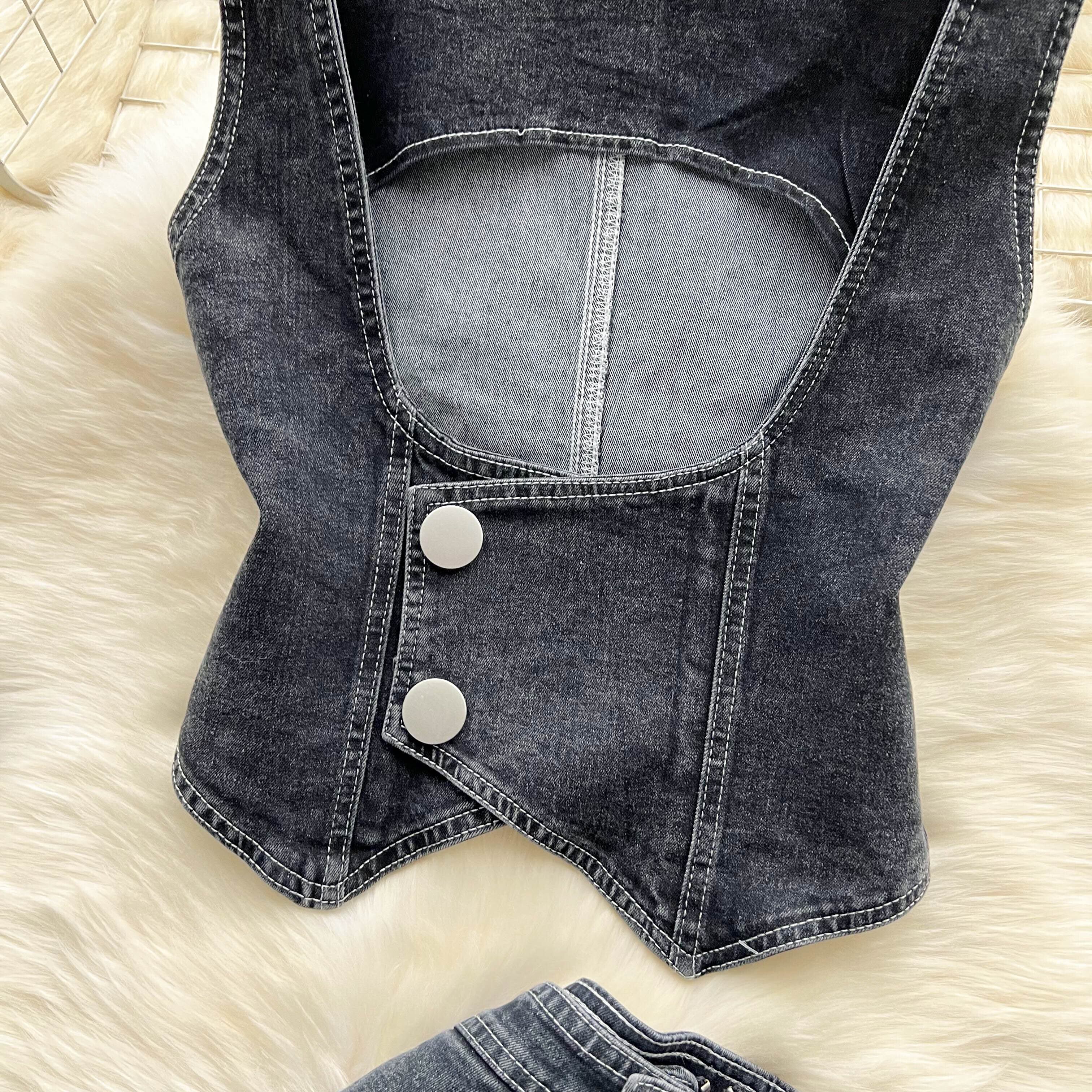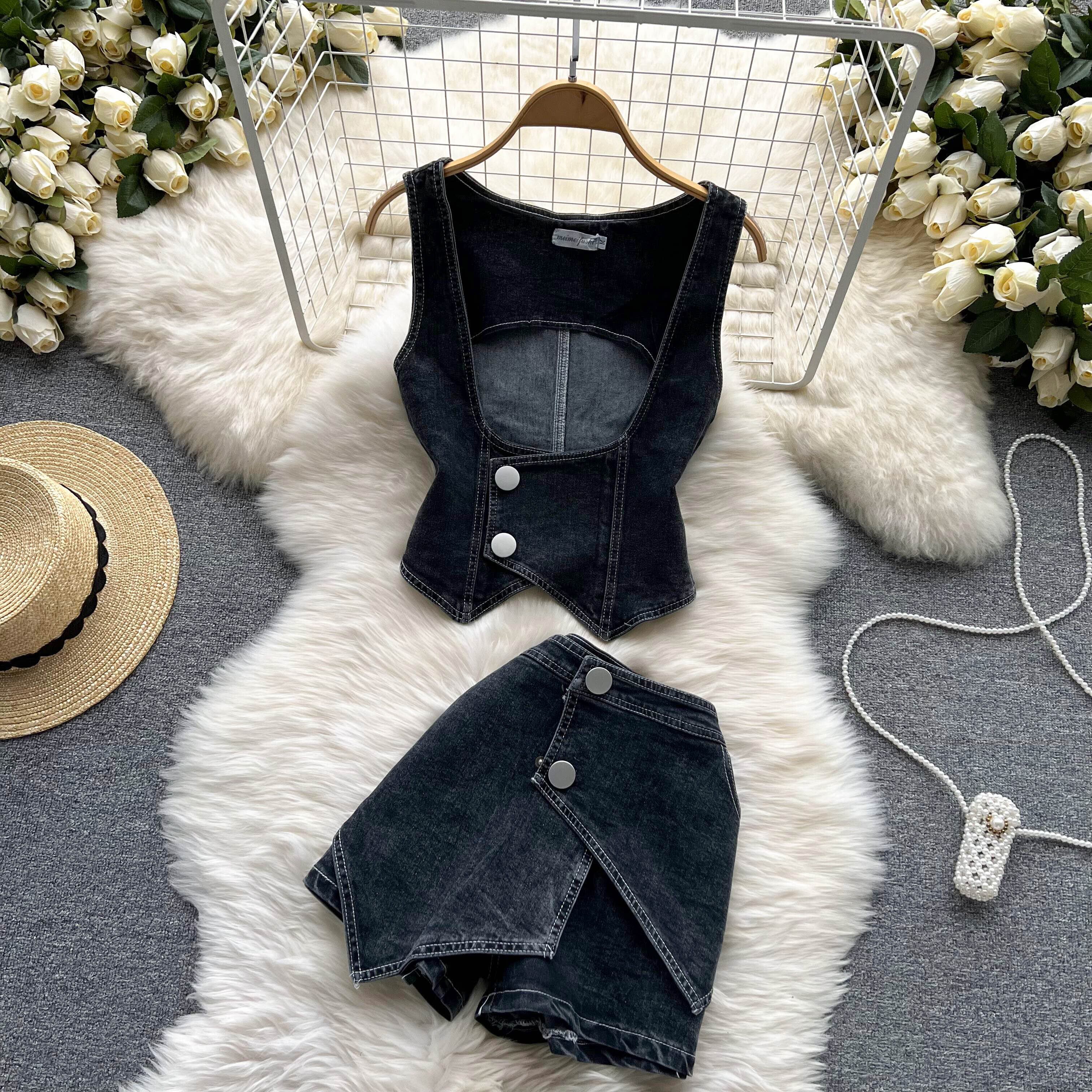 2022年女性SexyTwoピースドレススーツセットデニムノースリーブタンクトップ&スプリットショートスカート2ピースセット Abe77704636111