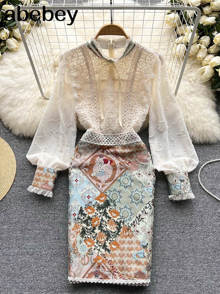 2022年夏の滑走路プリーツドレス女性レースパッチワーク花柄ホリデーミディドレスVestidos サマー 夏物 Abe76698807644