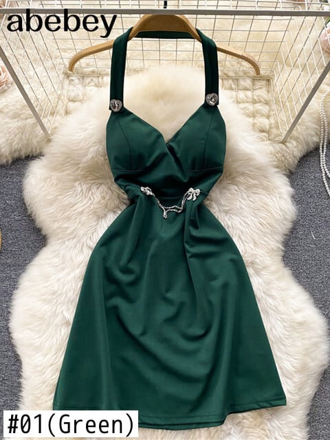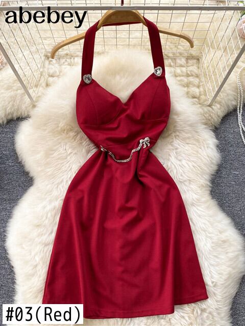 レッドホルターシャーリングレディースドレス2022サマーホロウアウトバックレスセクシードレスクラブパーティーナイトウェアビーチサンドレスローブ 夏物 Abe48692407870