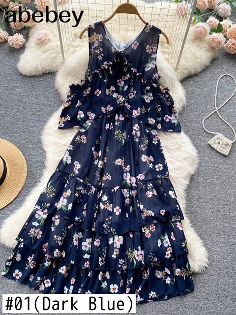 女性のドレス2022年夏セクシーなVネックフローラルプリント自由奔放に生きるビーチドレスフリル半袖Aラインミディドレスラップサンドレスローブ ショート ハーフスリーブ サマー 夏物 花柄 Abe12630377535