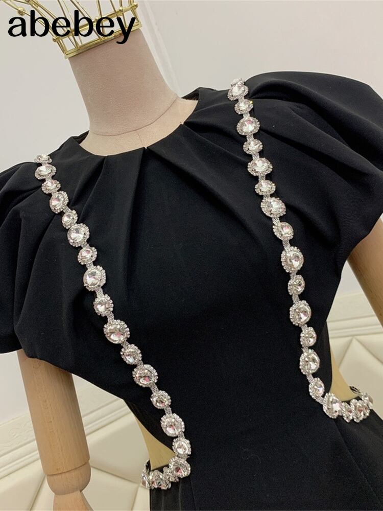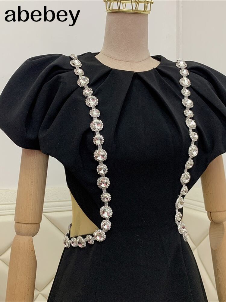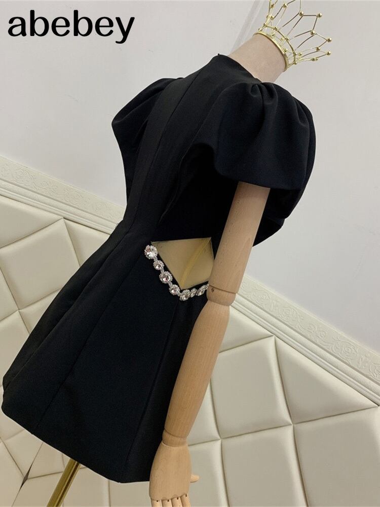 ソリッド女性ダイヤモンド半袖Oネックシャーリングラップミニドレスパフスリーブセクシーパーティー2022夏服Vestidos ショート ハーフスリーブ サマー 夏物 ソリッドカラー Abe79070714856