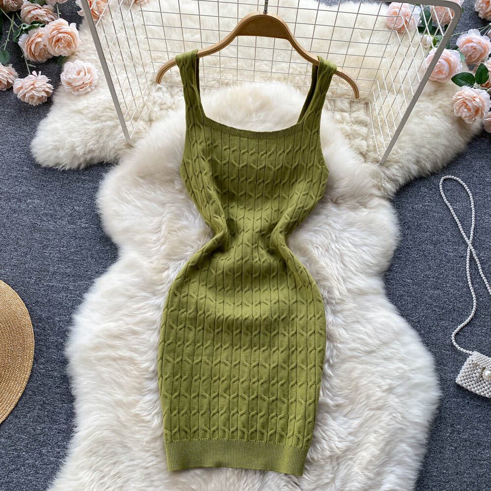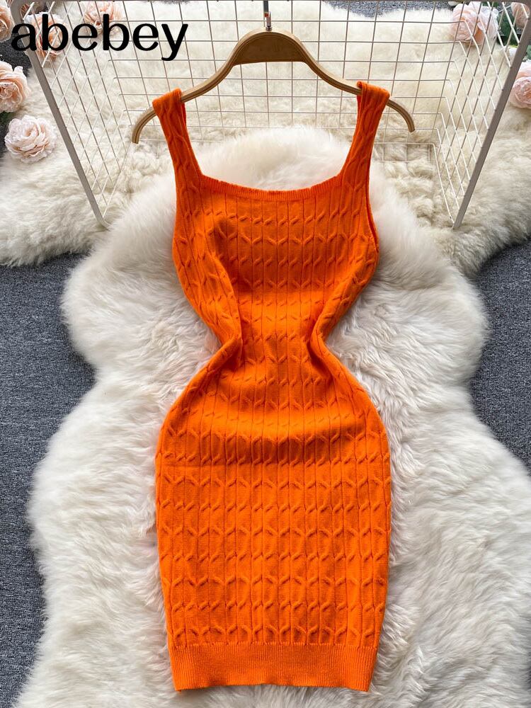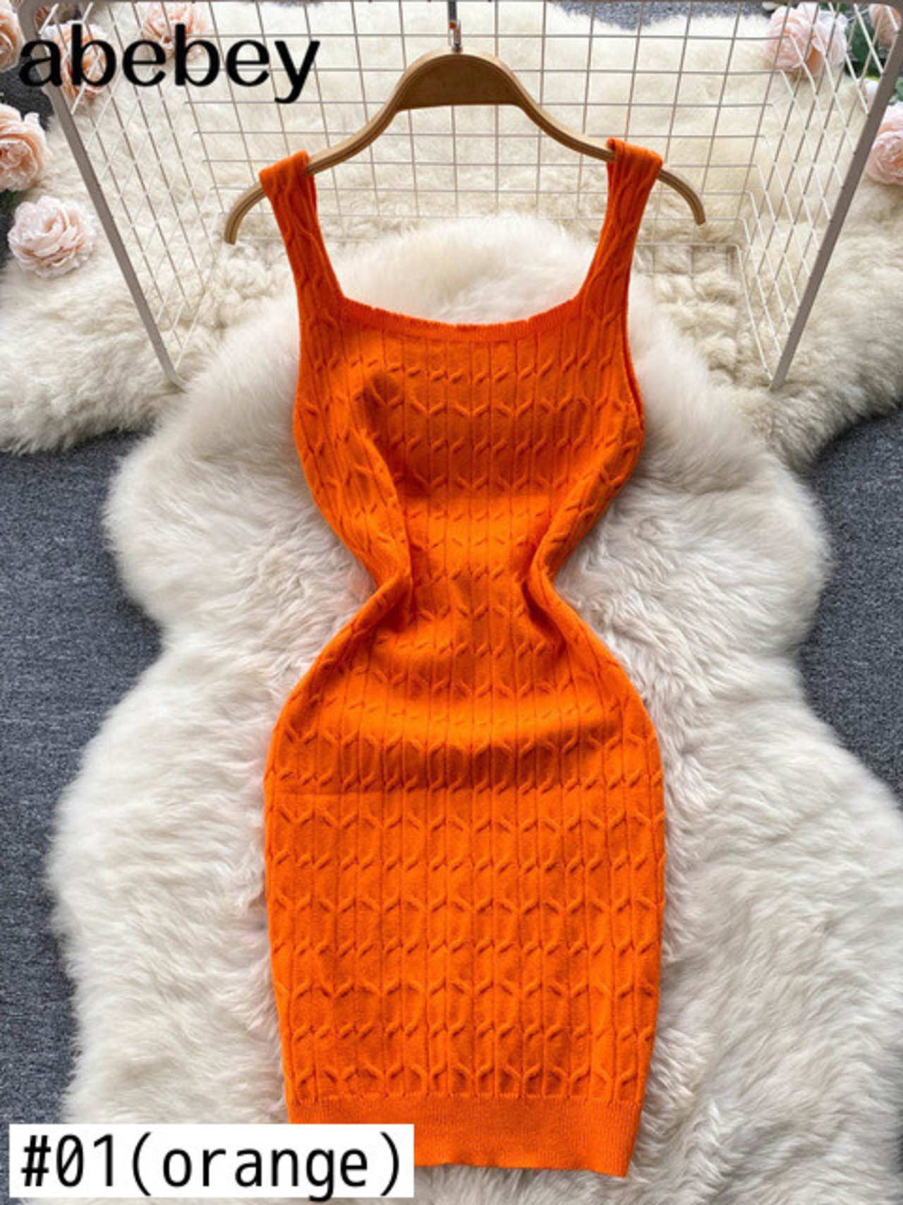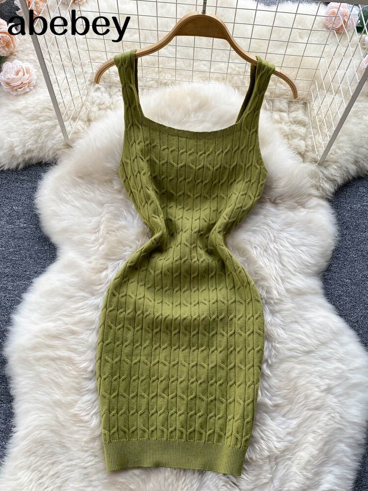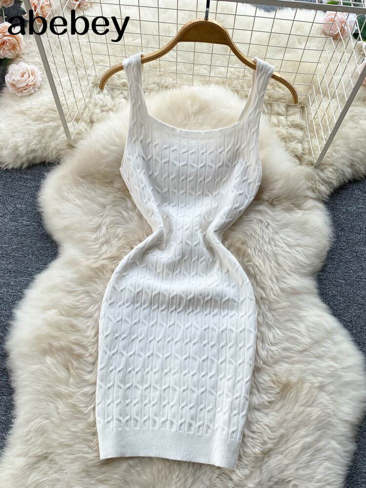 女性ニットストラップドレスノースリーブスリムペンシルドレス夏セクシーオフショルダーボディコンショートドレス サマー 夏物 Abe68150085002