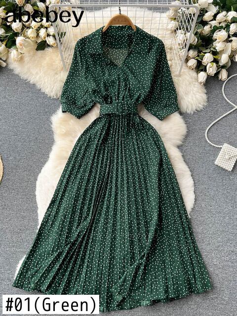 女性ヴィンテージプリントドレス2022年夏サッシパフスリーブロングローブシックドットストリートウェアマキシドレスビーチサンドレスローブ サマー 夏物 ビンテージ Abe43298266219