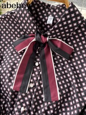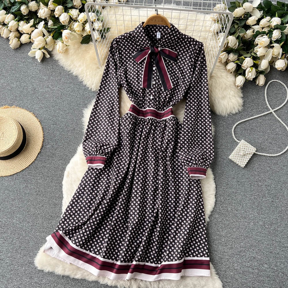 2022ヴィンテージフローラルプリントマキシドレス女性自由奔放に生きる長袖ロングドレスターンダウンカラーシャツドレスローブ 花柄 ビンテージ Abe79584480584