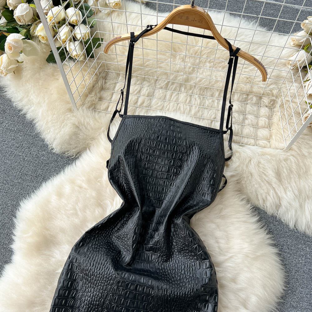 ナイトクラブパーティーサテンドレス女性2022年夏セクシーなPUボディコンローブ背中の開いたミニサンドレスVestidos サマー 夏物 Abe15310522575
