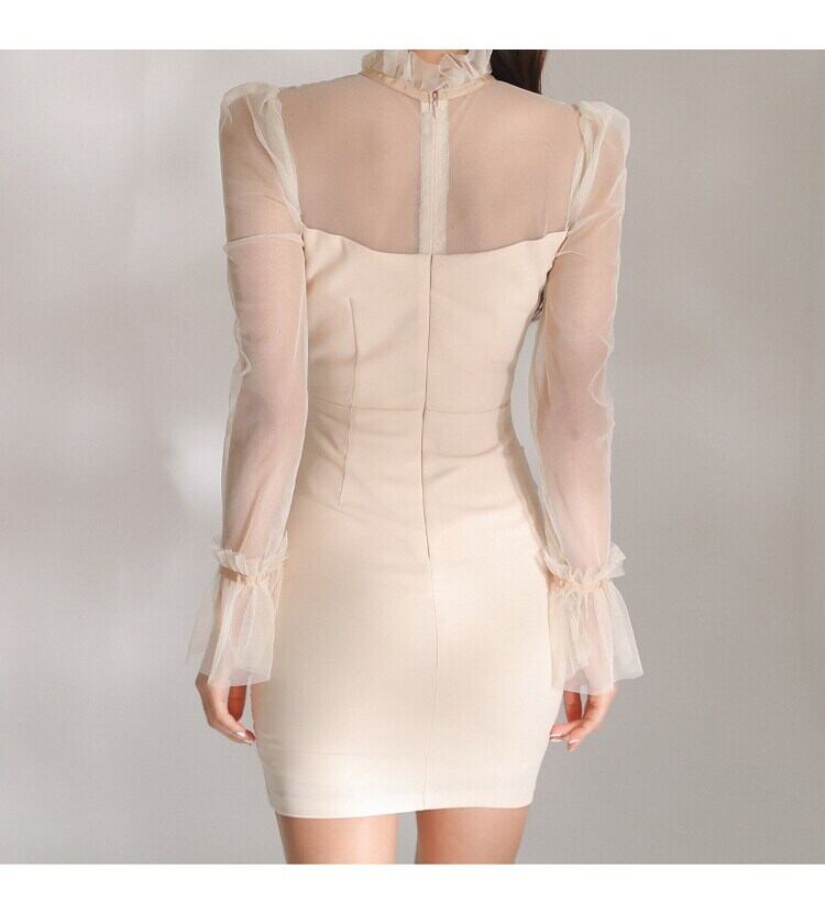 ドレス夏セクシースリムラップヒップ長袖メッシュドレス女性ミニパッチワークセクシーVestidosワイルドシック ロング サマー 夏物 Rhc3286890807