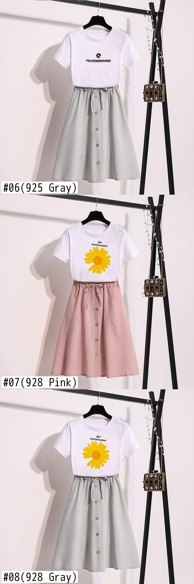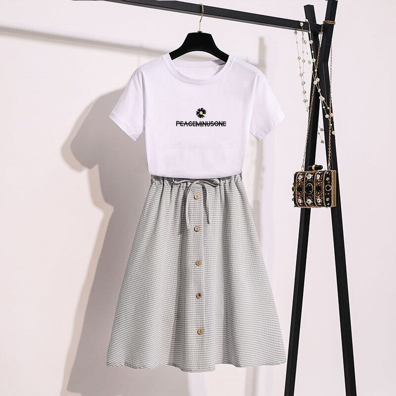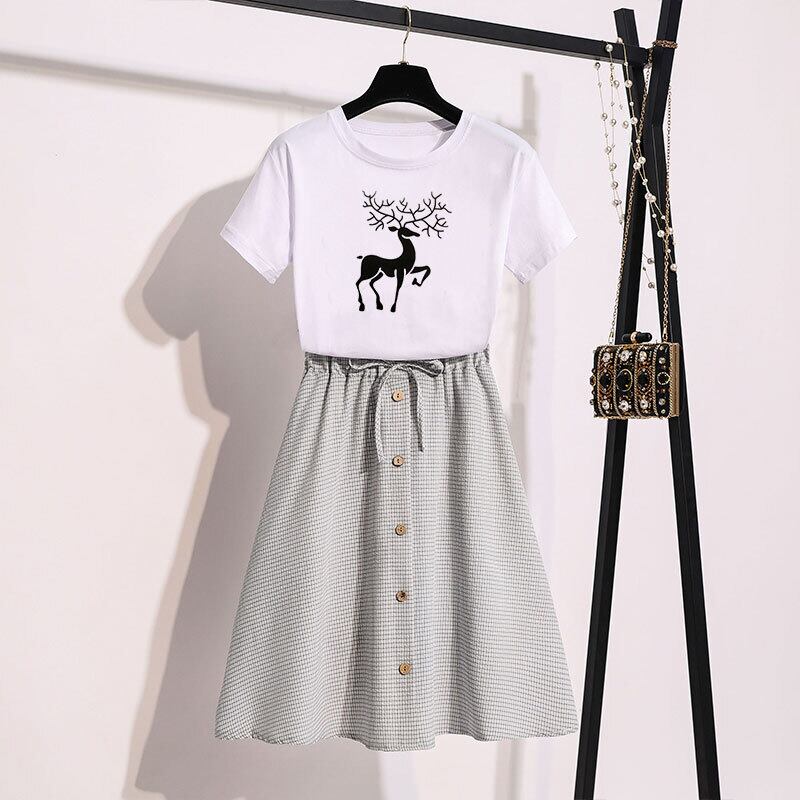 2022 Hot sPrintTシャツブラウス+ウエストニーAラインスカート2枚セットレディースサマーテンペラメントスーツ 夏物 Rhc74483444141