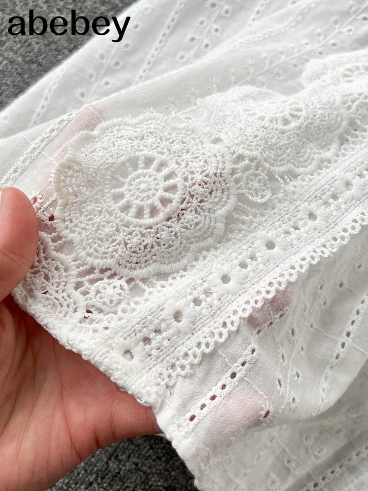 中空アウトホワイトドレスセクシーな女性のロングレースドレスクロスセミシアーVネック半袖レースマキシロングドレス ショート ハーフスリーブ Abe72279409547