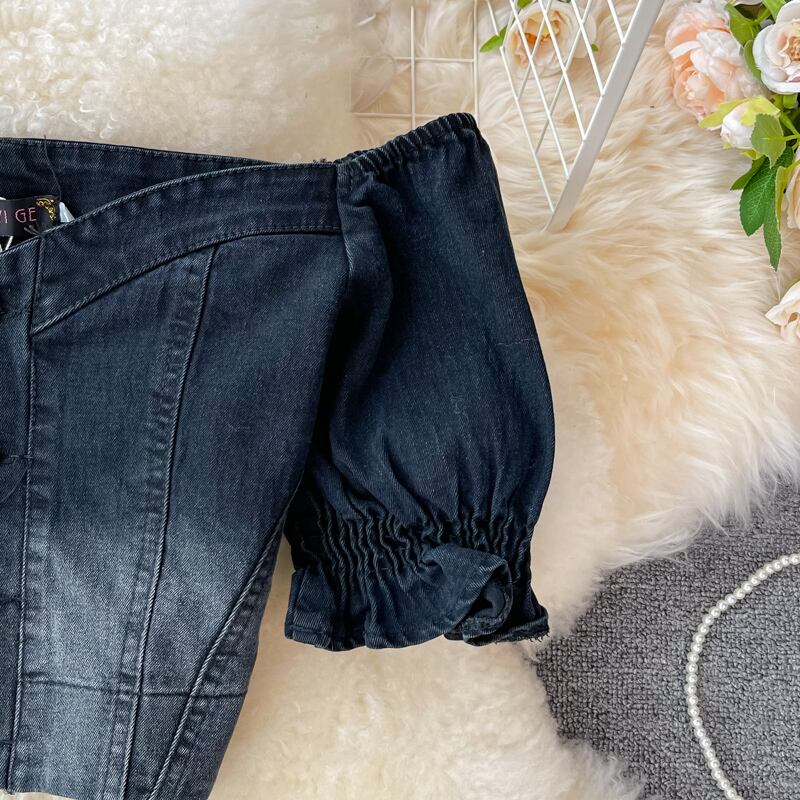 2022年女性ツーピースドレススーツセットデニム半袖トップ&スプリットロングスカートツーピースセット ショート ハーフスリーブ Abe49770080162