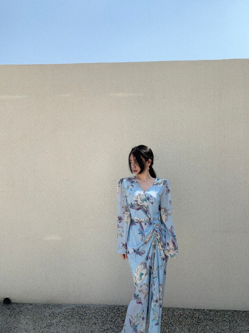 シックなヴィンテージ女性春夏ホリデーマキシドレス長袖VネックプリーツドレスレディシンプリントVestidosRopa ロング スプリング 春物 サマー 夏物 ビンテージ Rhc57802094736