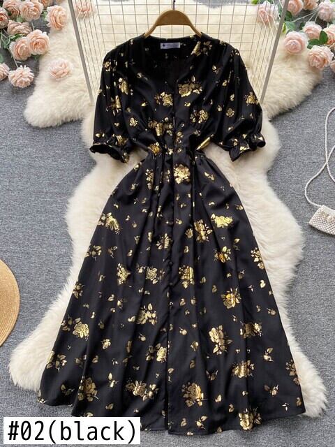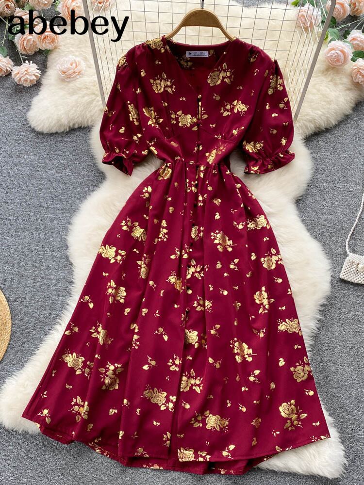 セクシーなVネックフローラルドレス2022バタフライスリーブウエストプリントドレス女性サマードレス 夏物 花柄 Abe22400805596