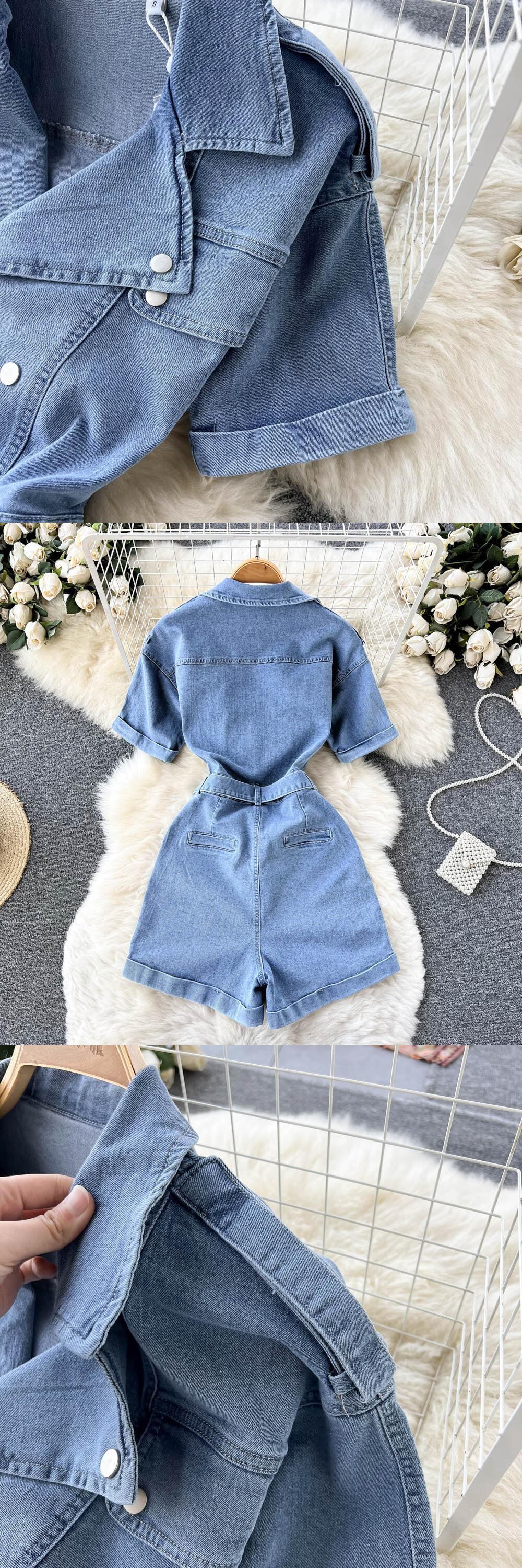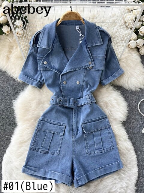 サマーヴィンテージデニムプレイスーツレディース半袖ボディコンSsロンパースジャンプスーツジーンズオーバーオールレディース ショート ハーフスリーブ 夏物 ビンテージ Abe41300467833