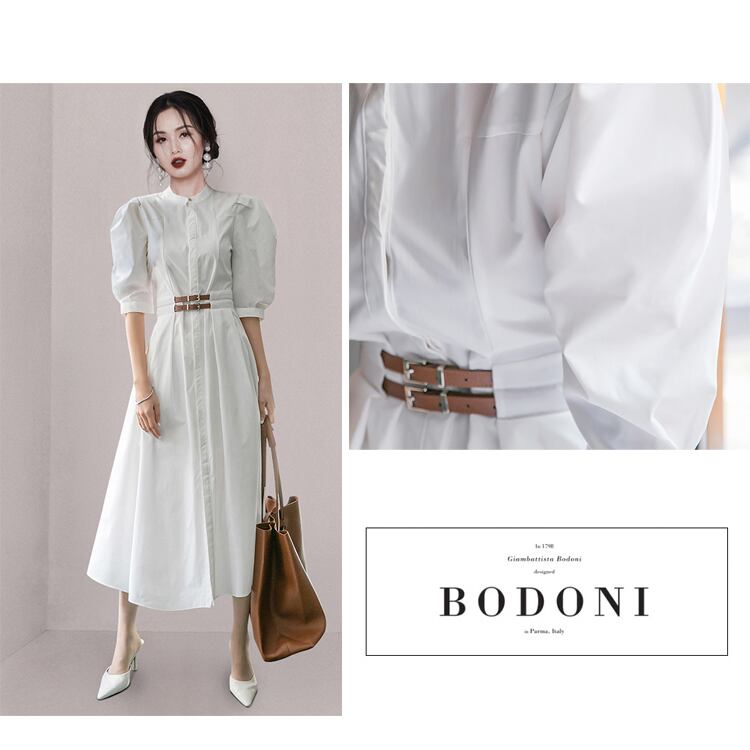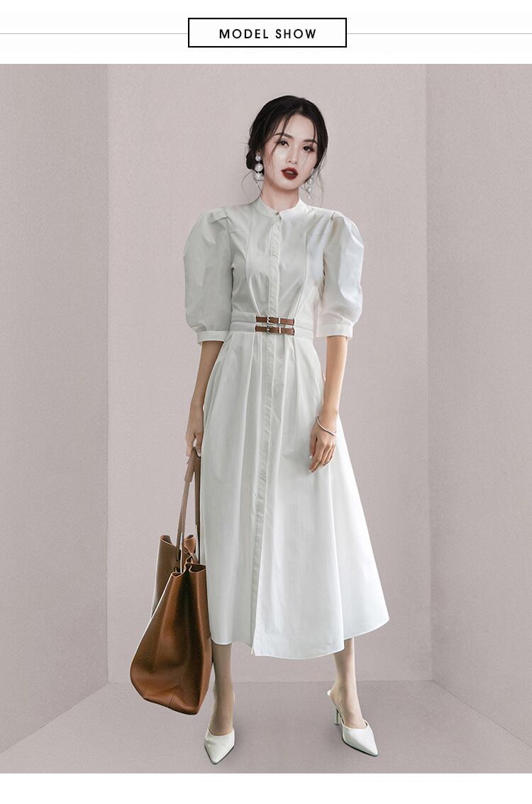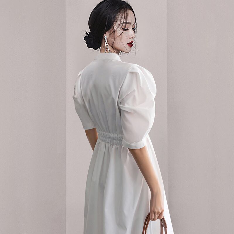 ホワイトパフスリーブレトロパレススタイル-エンドパーティードレス2022サマーフレンチスタンドカラーミッドレディヴェスティドス レース 夏物 Rhc40700281261
