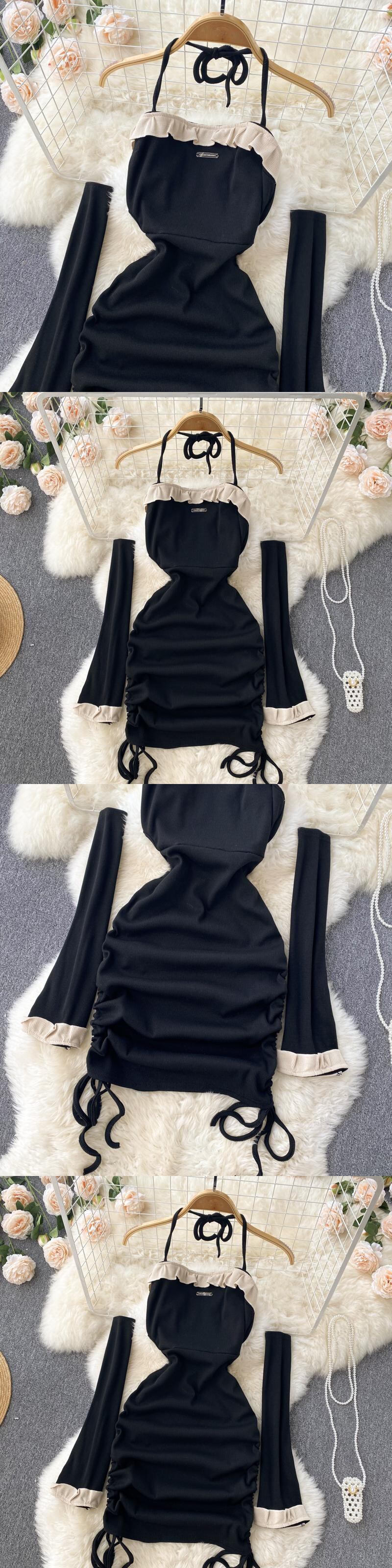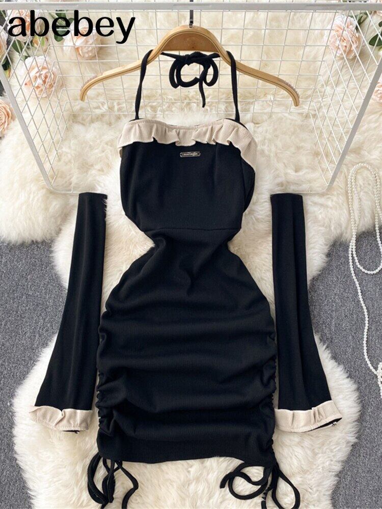 セクシーなパーティービーチバースデーブラックストラップレスドレス女性シンプルスリムリムーバブルスリーブドレス Abe43122613203
