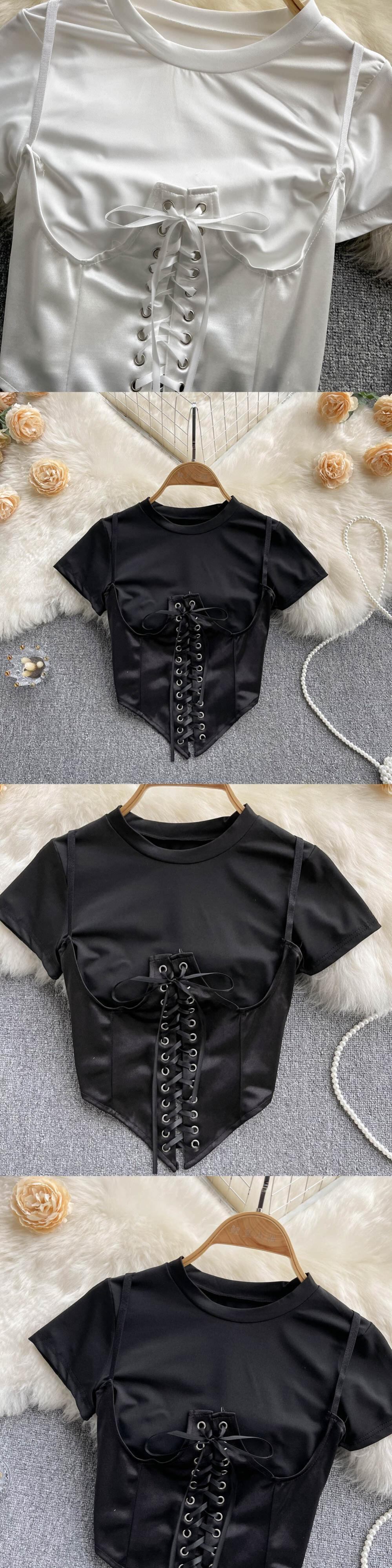 2022年夏の女性黒のショートTシャツセクシーなクロップトップ半袖包帯Tシャツトップスシャツ ブラック ハーフスリーブ サマー 夏物 Abe82412163920