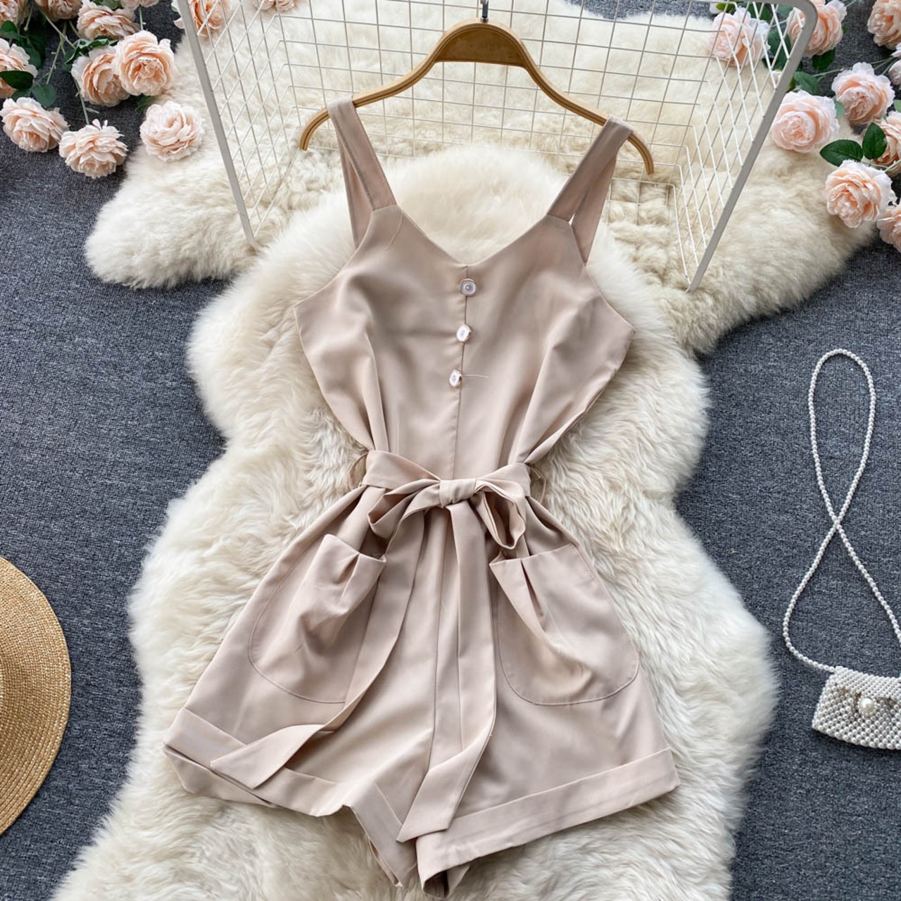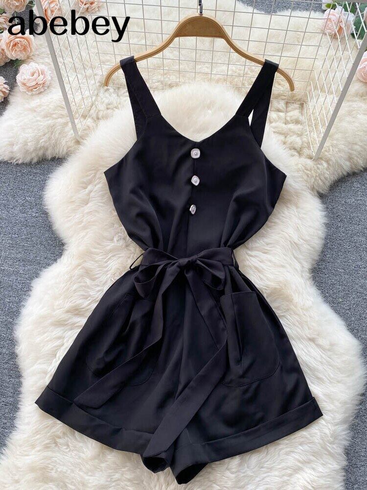 2022年夏のジャンプスーツ女性のプレイスーツノースリーブスパゲッティストラップ背中の開いたセクシーなクラブウェアショーツロンパースオーバーオール サマー 夏物 ブルマー Abe44093248245