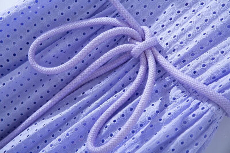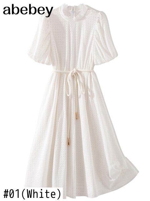 中空アウトブルードレス女性スタンドカラーパフスリーブウエストレースアップ気質ドレス Abe51777127465