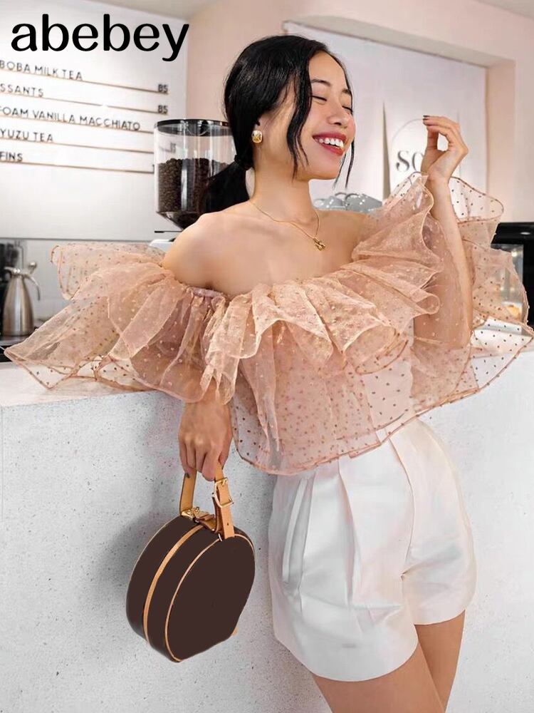 ルーズスウィートシャツレディースVネックノースリーブフリルトリムブラウスサマースタイル2022 大人ガーリー キュート カジュアル 夏物 Abe17736824082