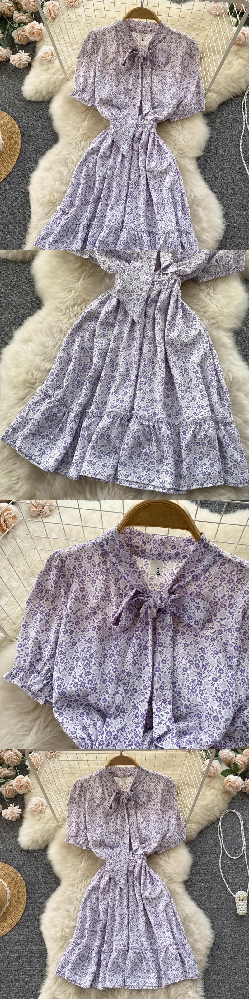 女性2022半袖ボウネックミニドレスフローラルプリントブラックサマードレス女性2022 ショート リボン ハーフスリーブ 夏物 花柄 Abe13268967360