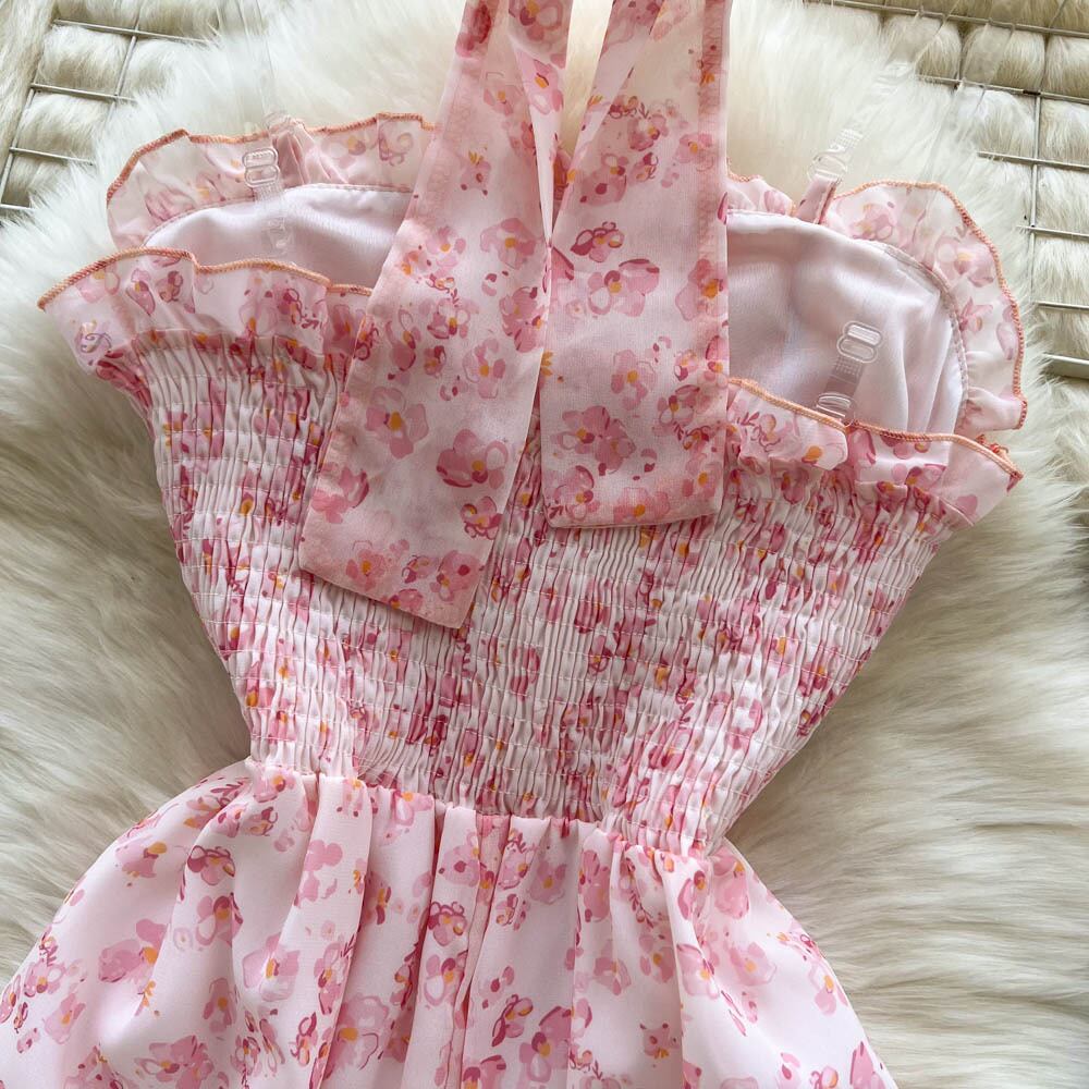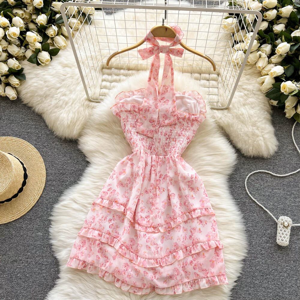 花の自由奔放に生きるフレンチドレスの女性ピンクの花柄ボヘミアンビーチスタイルの夏のミニドレス2022 サマー 夏物 フラワーデザイン Abe2894148136