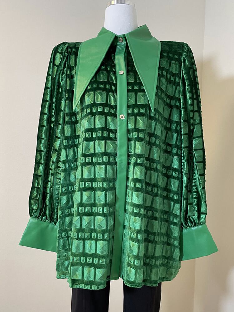 ストリートプレーンブラウス女性ラペルルーズ長袖シングルブレストオープンステッチ2021秋 ロング オータム 秋物 Abe73562500420