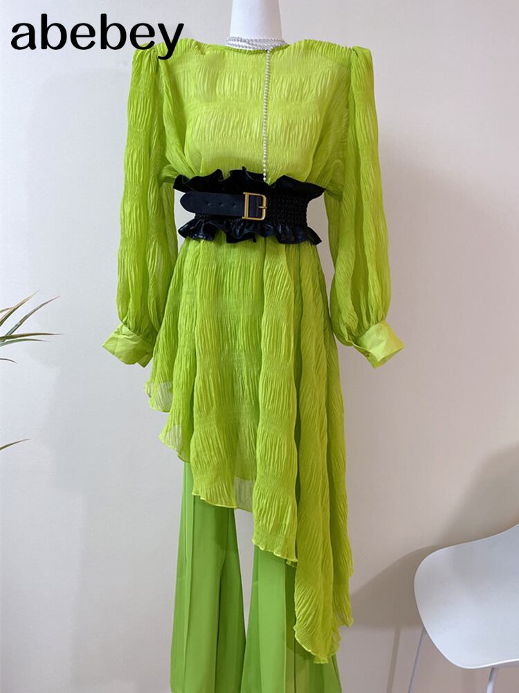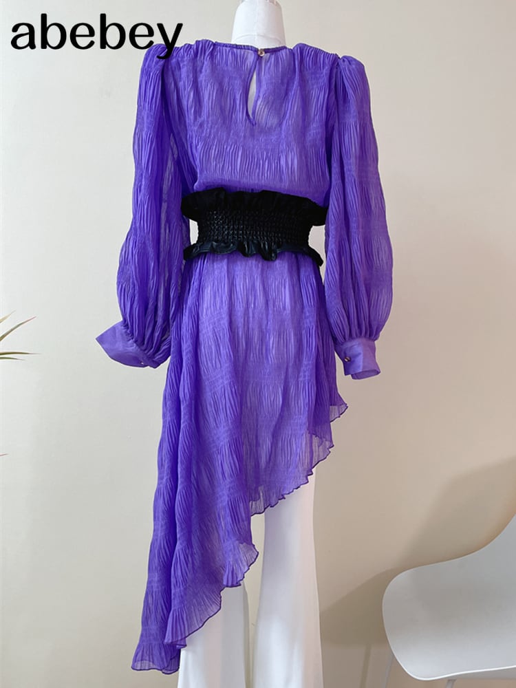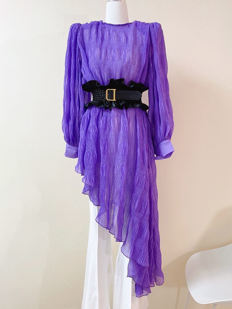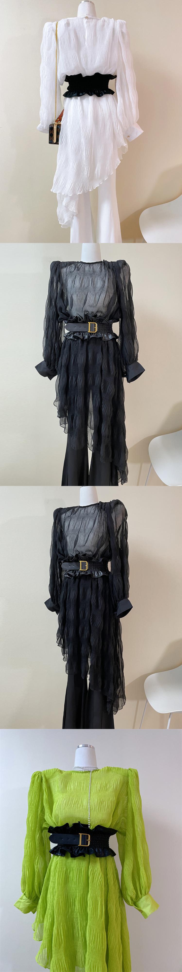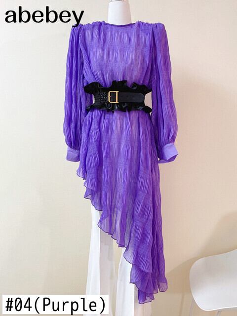 ルーズシャツレディースラウンドネック長袖シャーリングソリッドブラウス春スタイル2022 ロング スプリング 春物 Oネック ソリッドカラー Abe1506782710