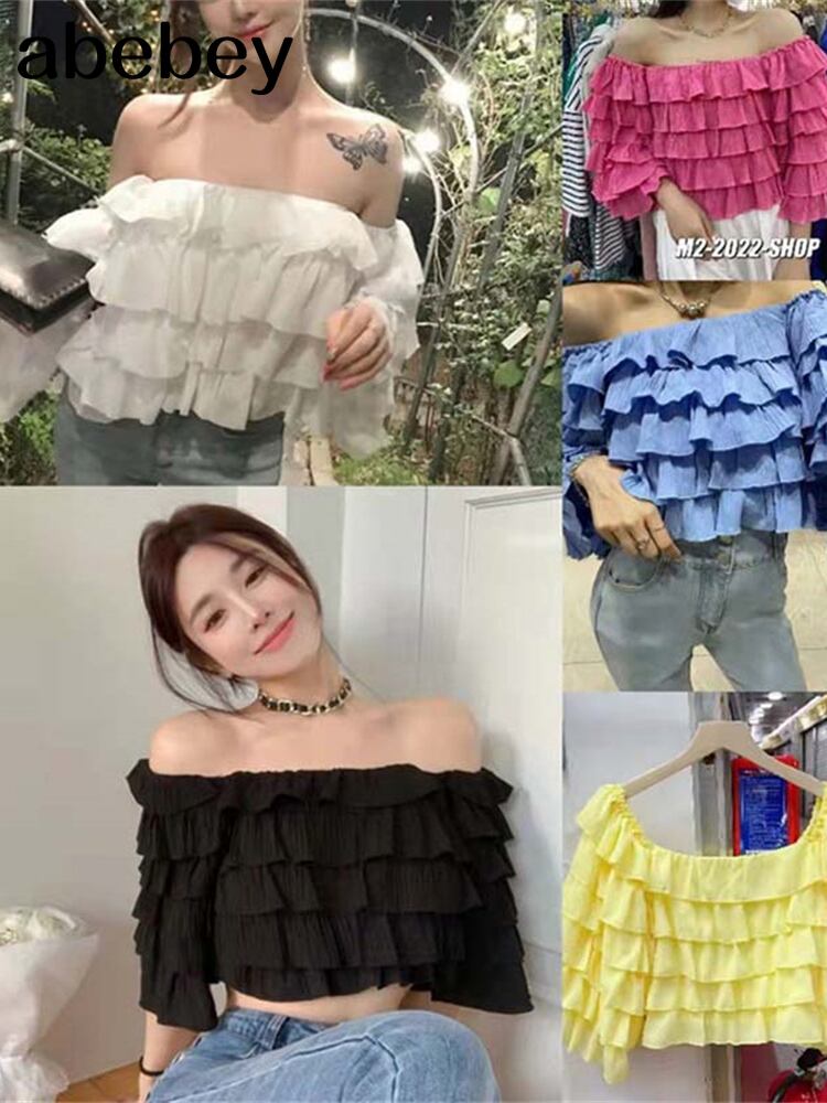 2022ヴィンテージパッチワークフリルシャツ女性スラッシュネック半袖ソリッドブラウススタイル ショート ハーフスリーブ ソリッドカラー ビンテージ Abe35294002963