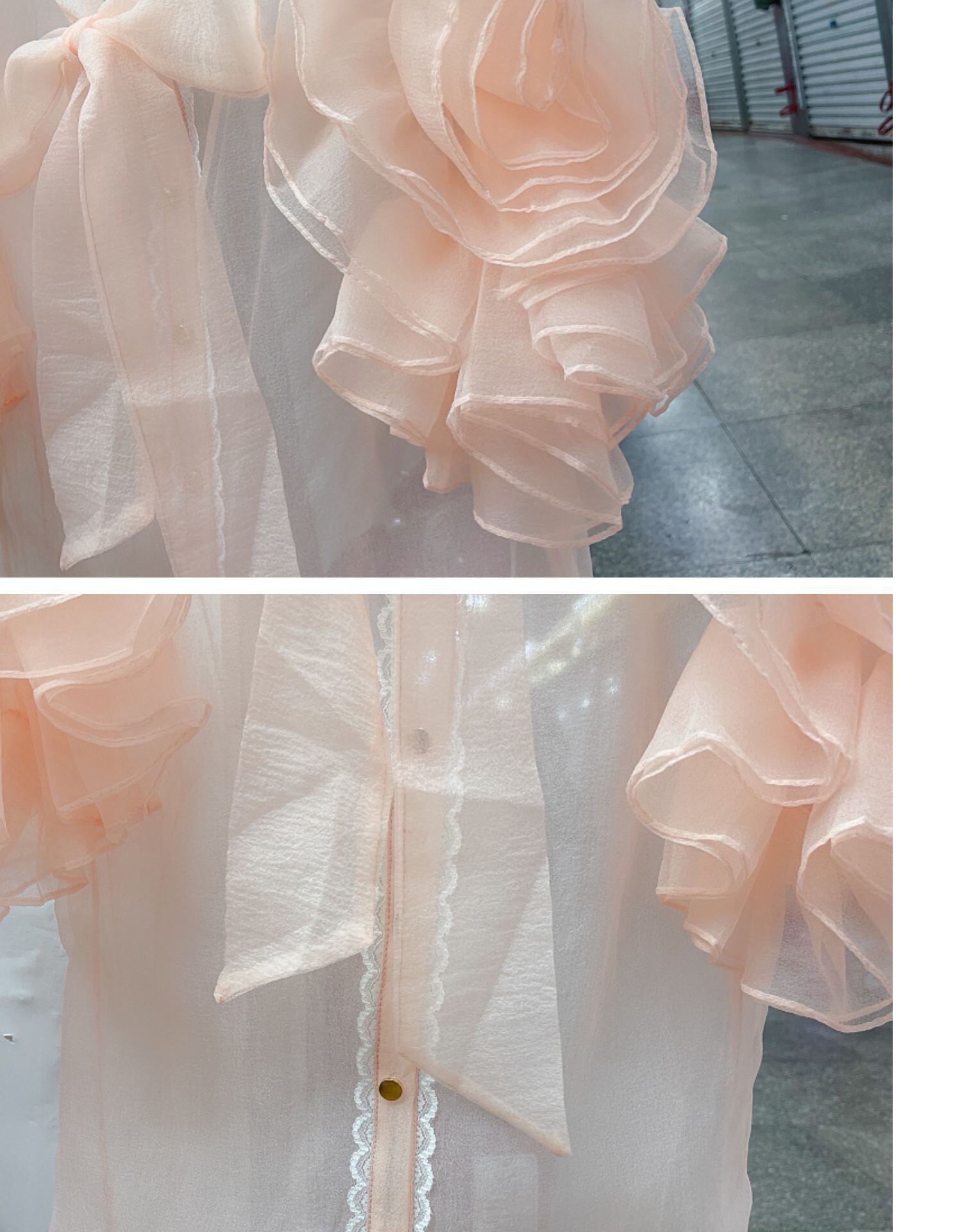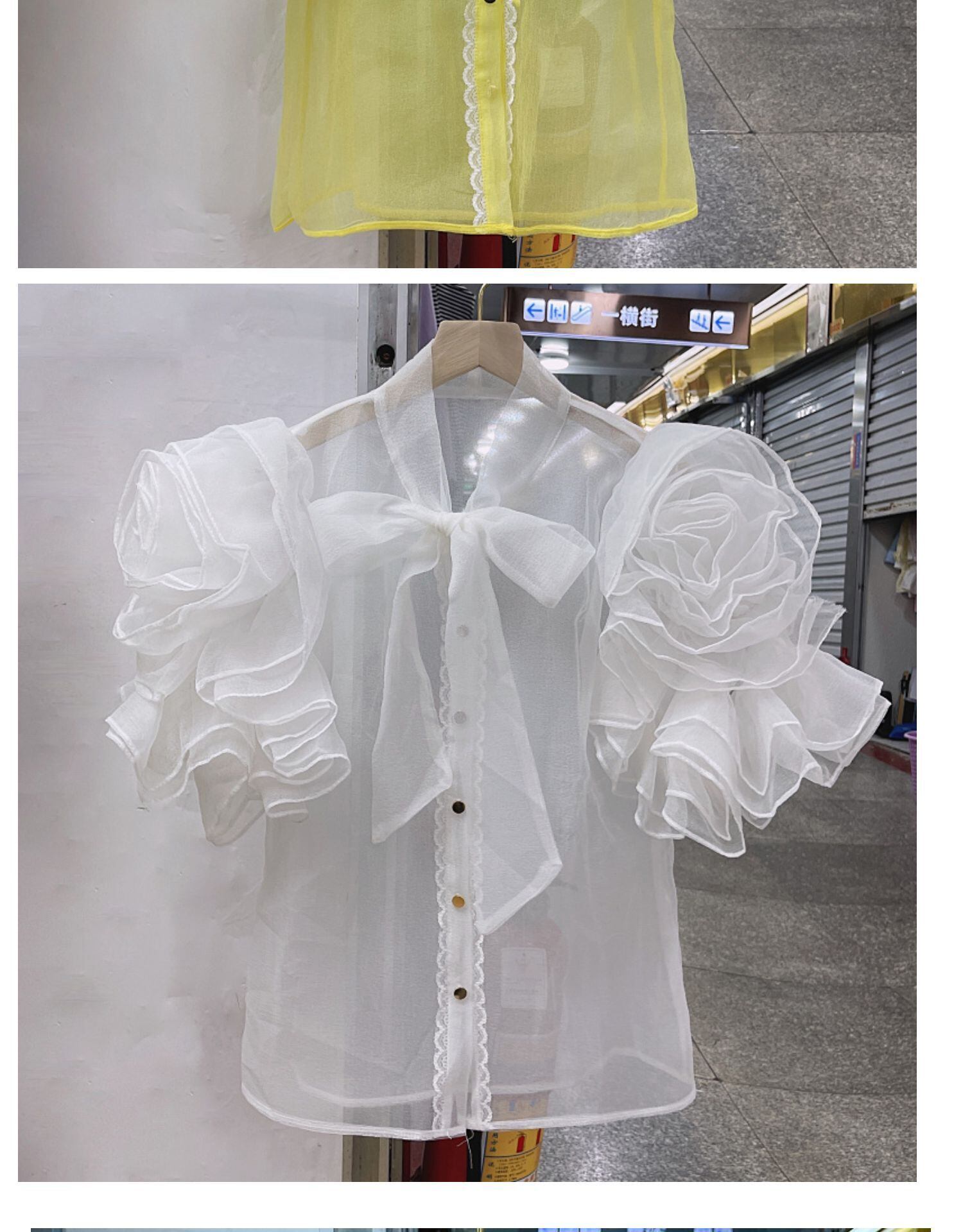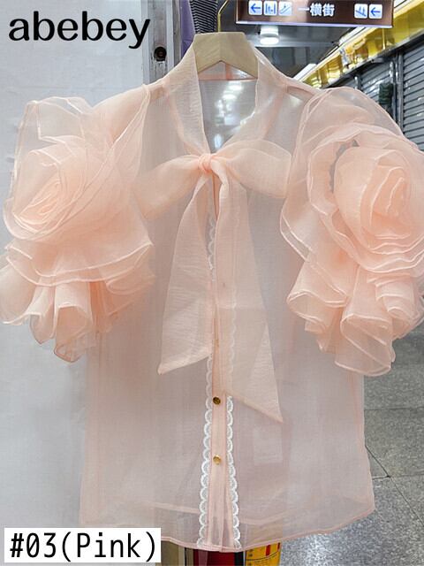 2022年夏の3DフラワーフリルパースペクティブシャツレディースシックボウバンデージVネックシャツトップデ リボン サマー 夏物 フラワーデザイン Abe80906939207