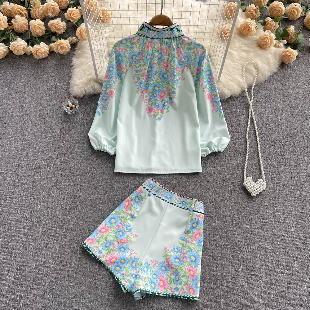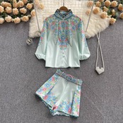 ショーツスーツ女性ハーフネック長袖ヴィンテージプリントシングルブレストショートセット秋ツーピースSe ロング オータム 秋物 ブルマー ビンテージ Abe29616299175