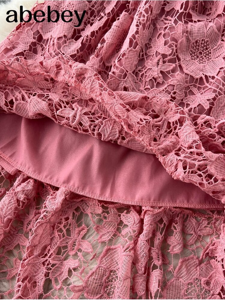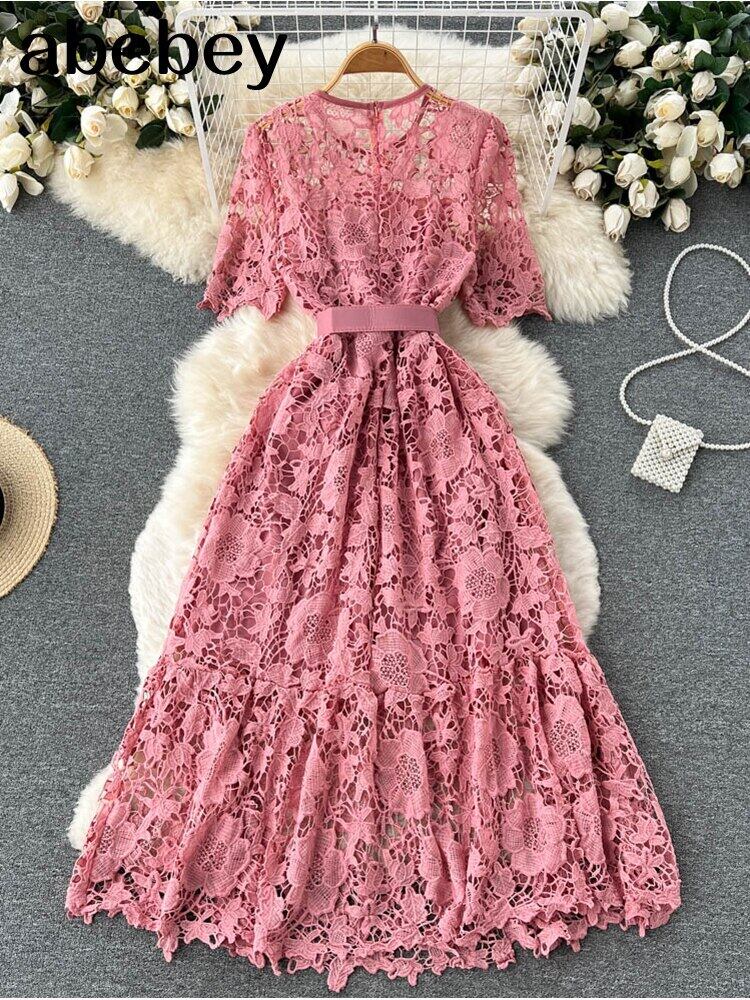 女性ヴィンテージ夏の花の刺繡半袖中空アウトレースミディドレスセクシーなサッシパーティードレスVestidos ショート ハーフスリーブ 刺繍 サマー 夏物 フラワーデザイン ビンテージ Abe24950514517