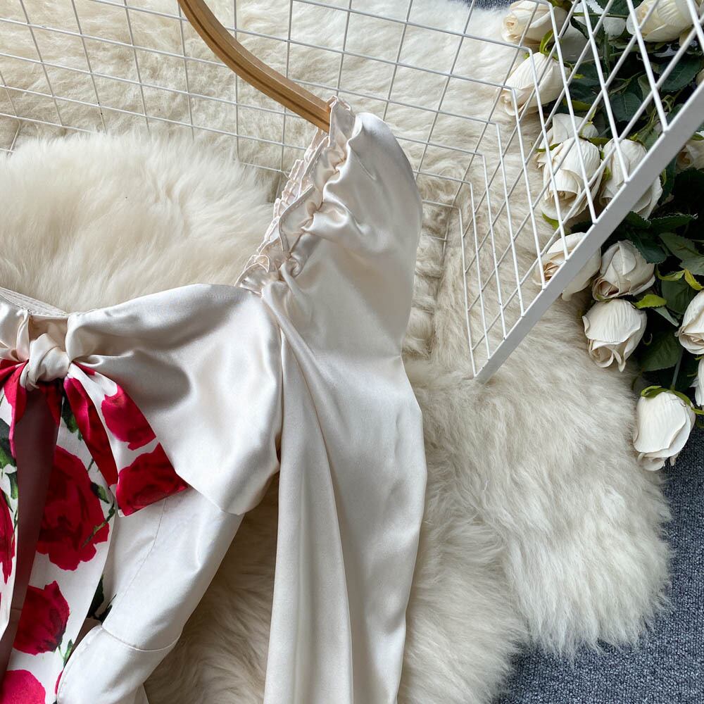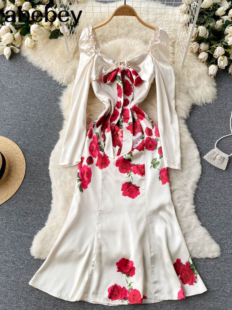 長袖花柄プリントシャーリングパーティー2022女性サマードレスロングマキシドレス巾着セクシーVestidosサンドレス 夏物 Abe66381305661