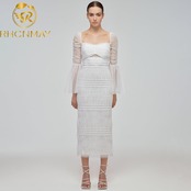 滑走路2022ヴィンテージ植毛白いドレス女性夏休みフレアスリーブスクエアネックボディコンドレス女性ウエスト ホワイト サマー 夏物 スクウェア ビンテージ Rhc40348517103