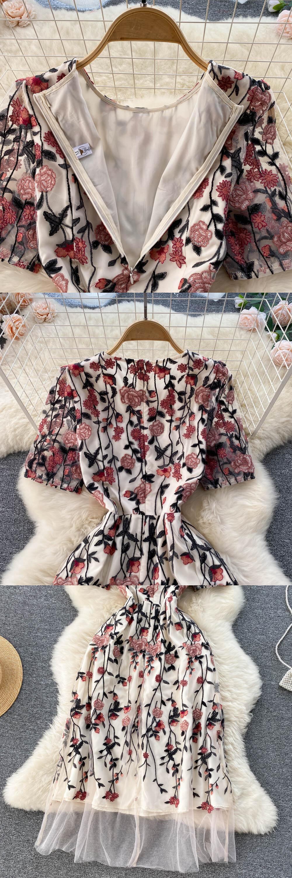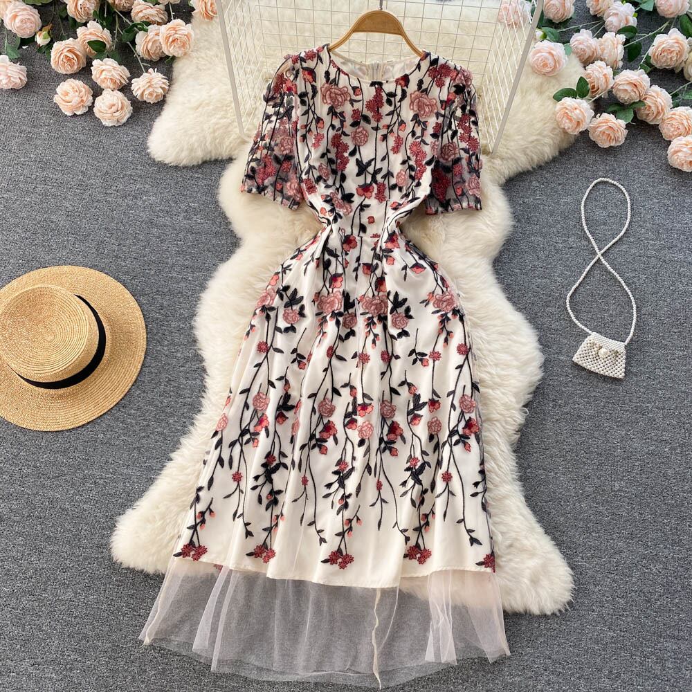 2022年秋の女性のドレスベージュのレースOネックウエストメッシュマキシドレスVestido滑走路 オータム 秋物 Abe743919330