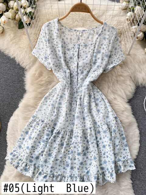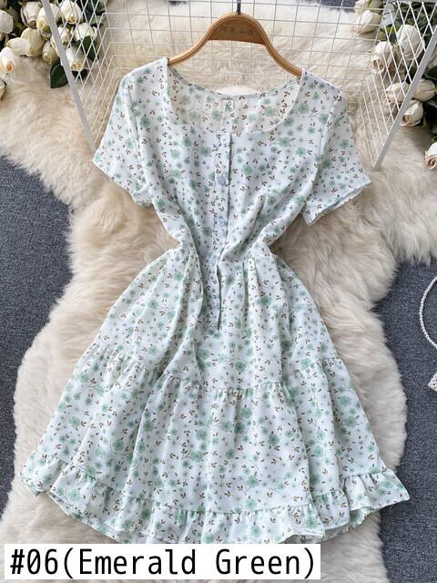 2022年夏のAラインドレス半袖プリントスクエアネックショートドレスオフィス ハーフスリーブ サマー 夏物 スクウェア 会社 学校 通勤や通学にも Abe5793761052