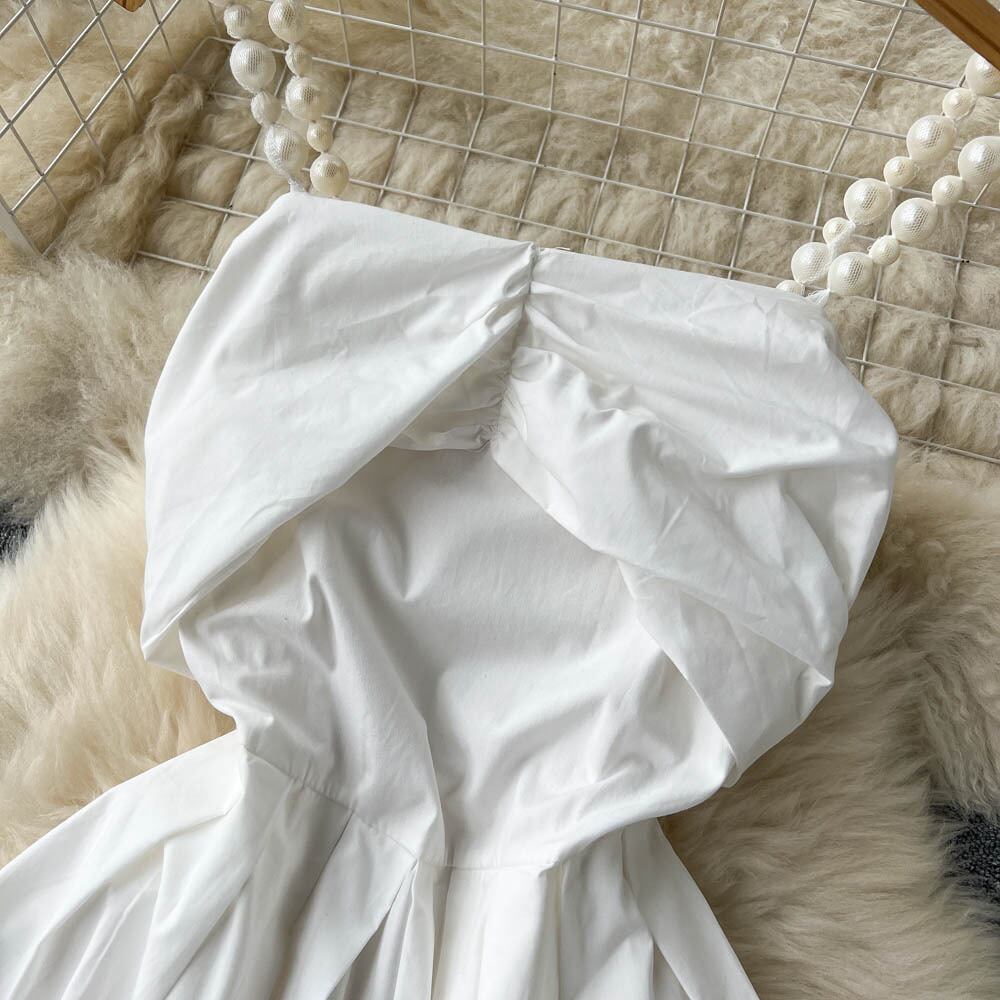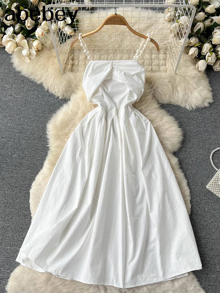 セクシーな背中の開いたストラップドレス女性ノースリーブオフショルダークラブパーティードレス夏のAラインバケーションビーチサンドレスホワイト サマー 夏物 Abe50921263930