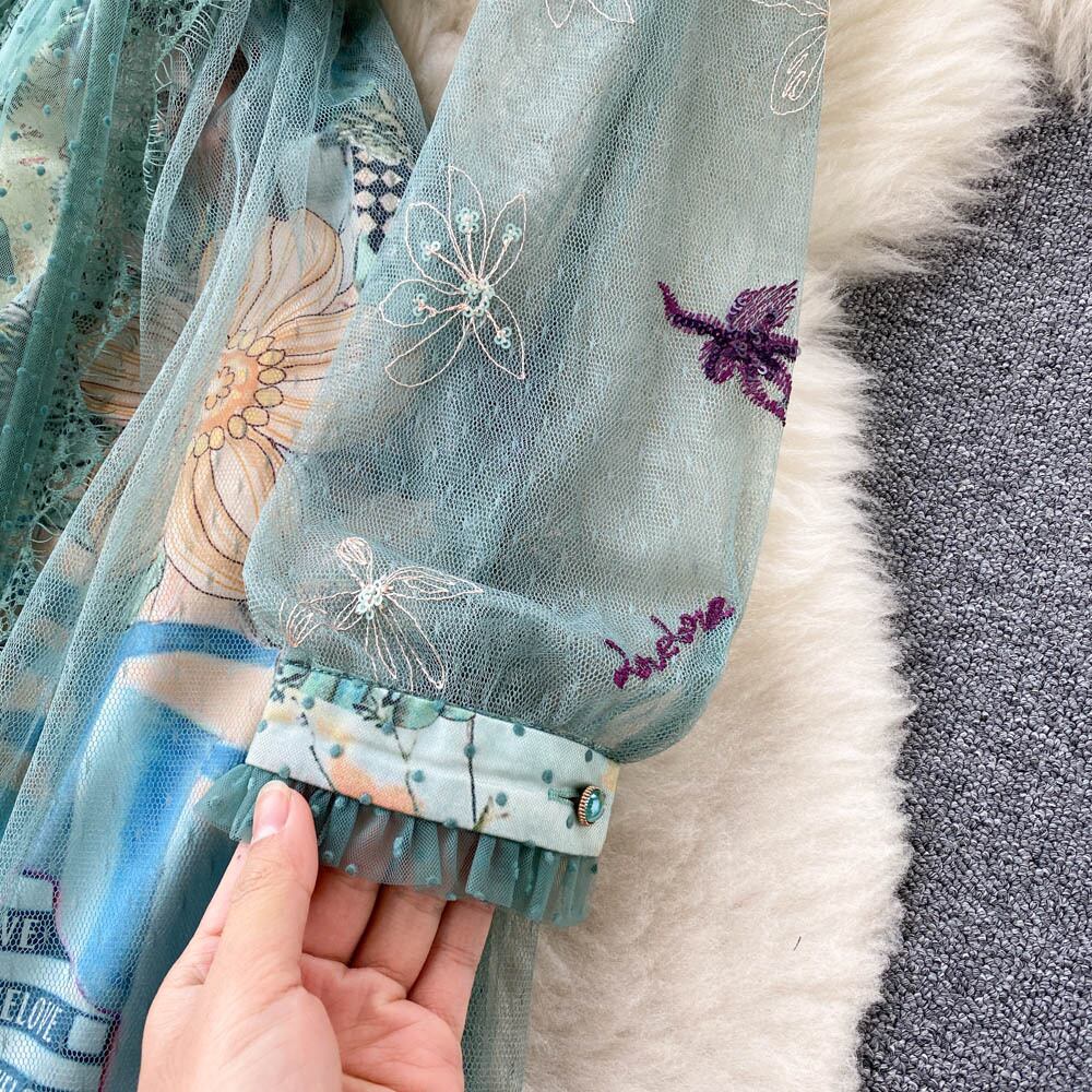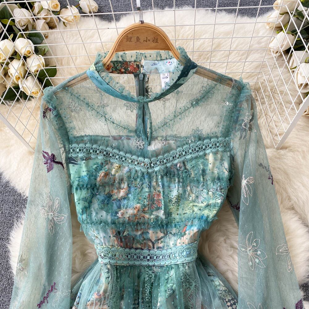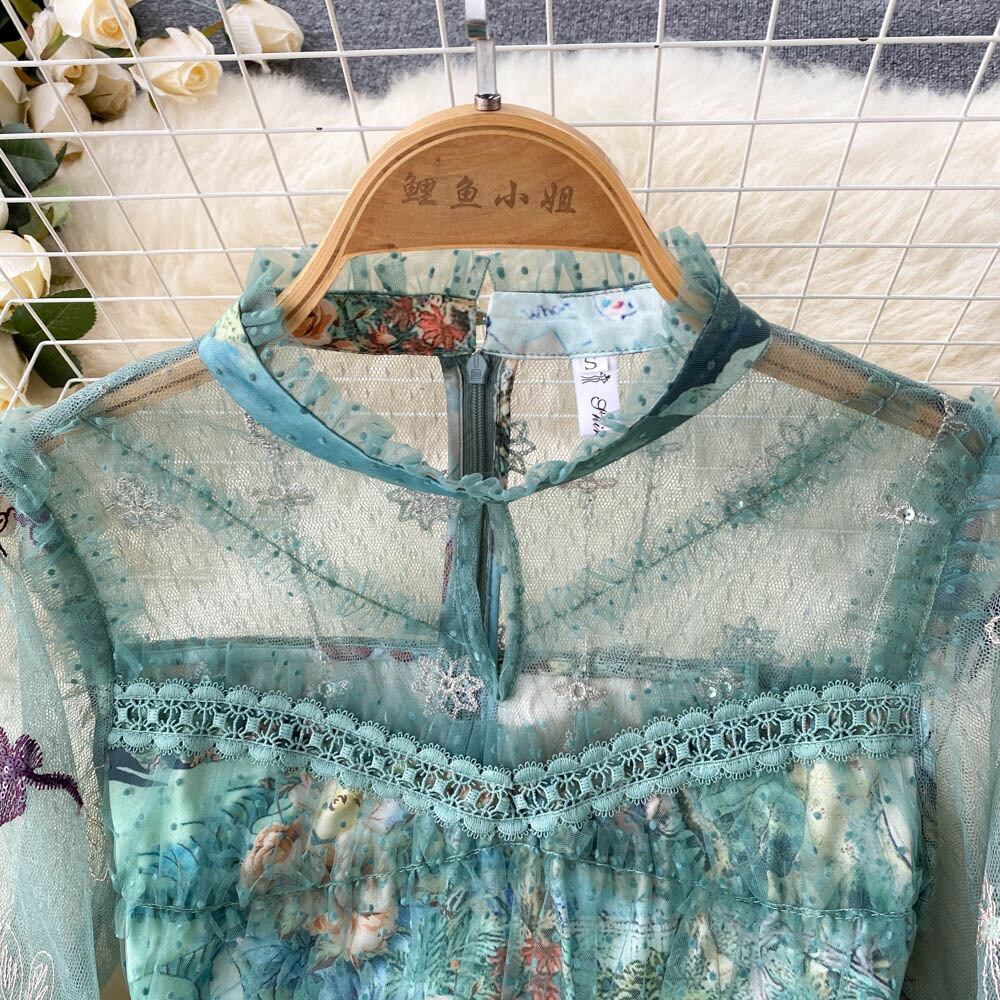 滑走路花刺繡サマーパーティードレスヴィンテージ女性ミディロングAラインドレス美的ZA 刺繍 夏物 花柄 ビンテージ Abe32714978483