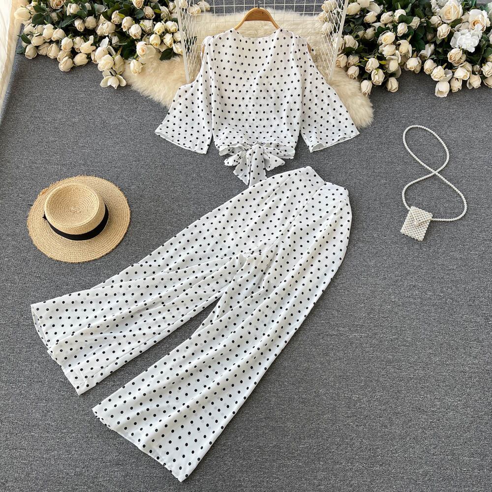 2022年夏の女性用セットボタンアップブラウスシャツトップスとパンツトラックスーツツーピースセットフィットネス衣装 サマー 夏物 Abe51848687006