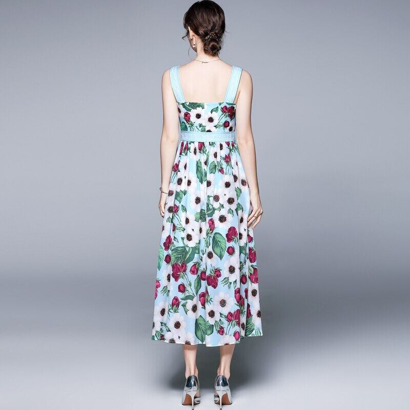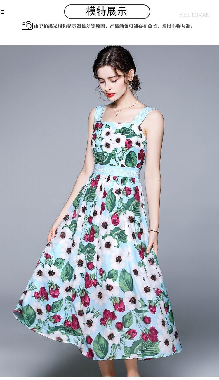 2021年夏のボヘミアンホリデードレス女性スパゲッティストラップフラワープリント滑走路ミディドレスVestidos サマー 夏物 フラワーデザイン Rhc27503802177