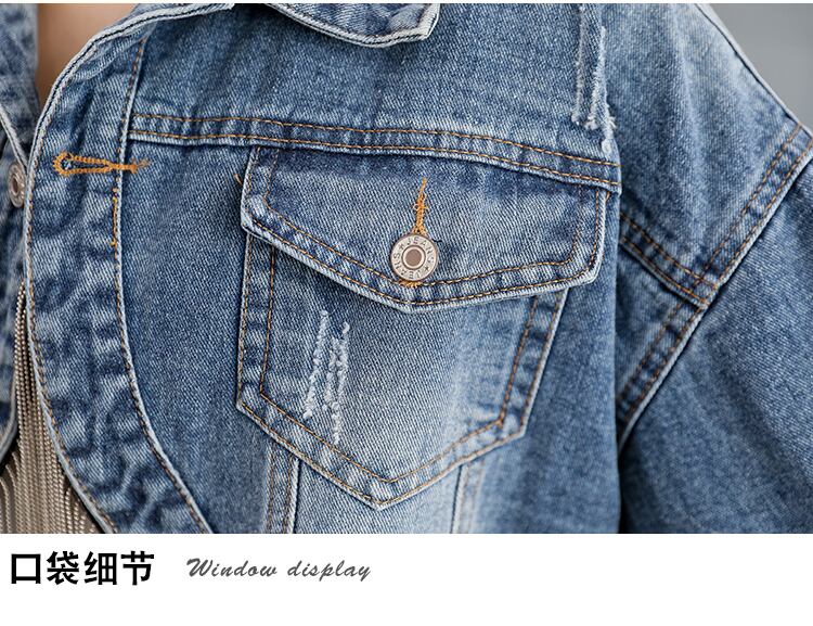 2022年春秋Telチェーンパッチワークデニムジャケット女性ショートアウター女性非対称ジャケット スプリング 春物 オータム 秋物 Abe53181003309