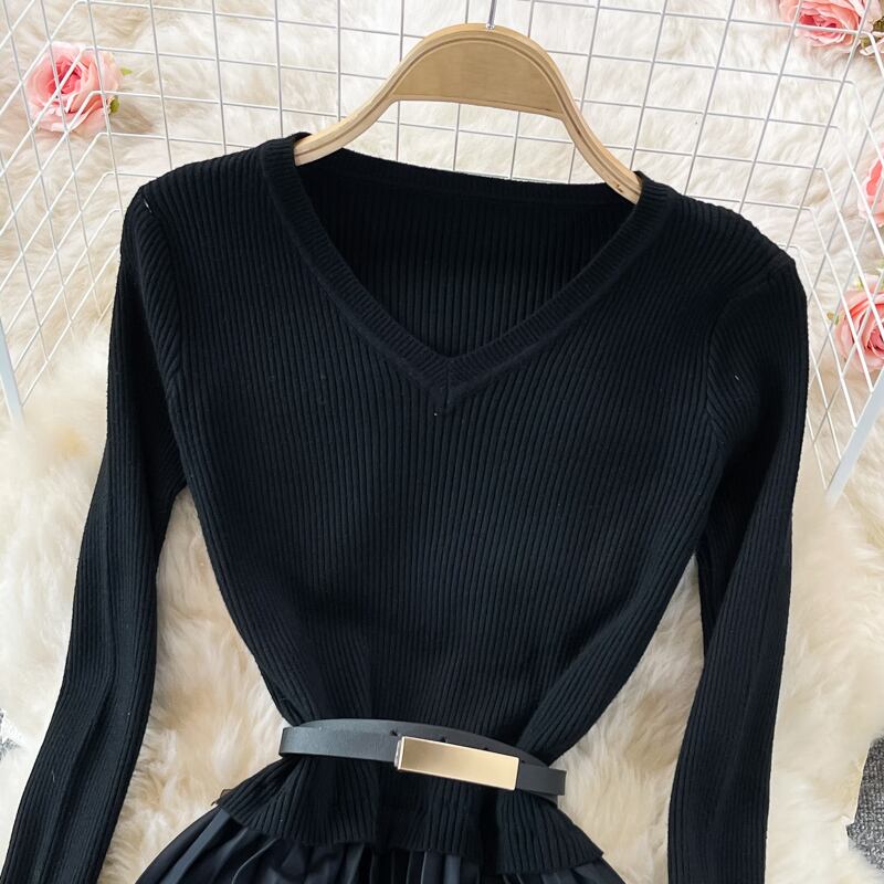女性秋冬セータードレスカクテルパーティーローブヴィンテージプリーツキットドレスVestidos オータム 秋物 ウィンター 冬物 ビンテージ Rhc99006841491