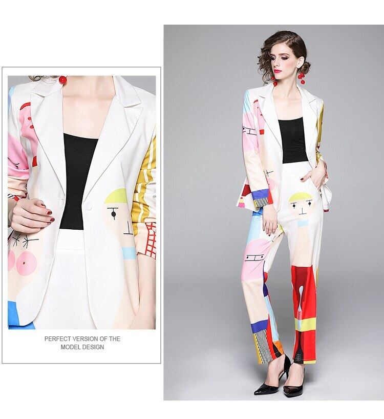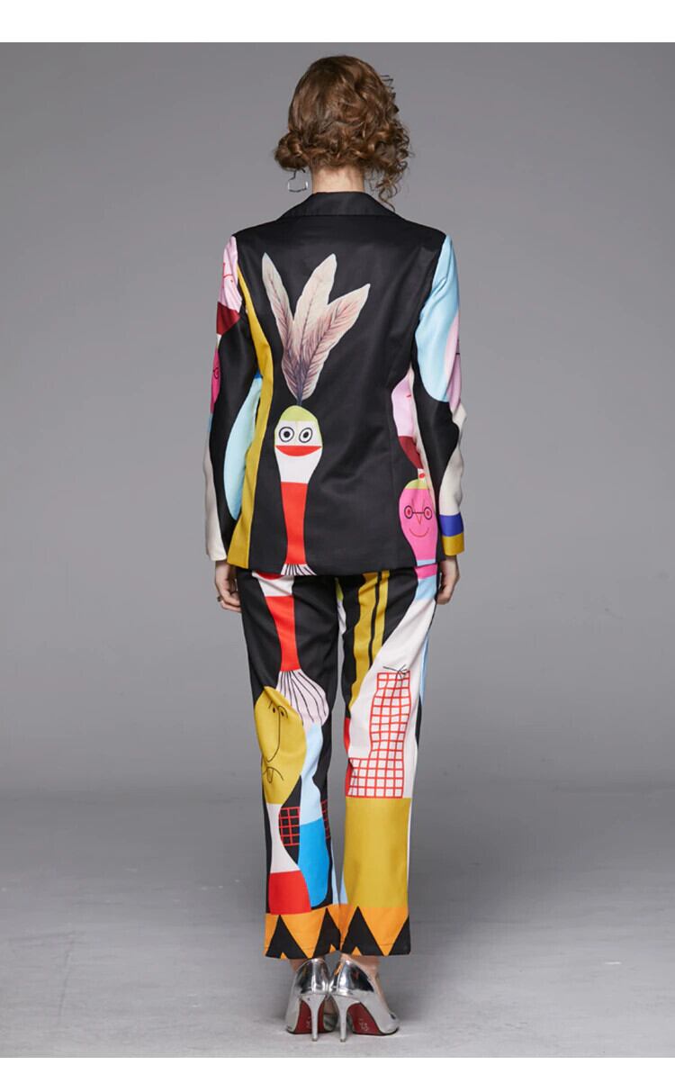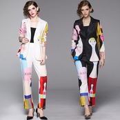 2020年セット秋女性長袖漫画プリント可愛らしさスーツ+伸縮性ウエストパンツツーピーススーツ ロング エラスティック オータム 秋物 Rhc95770969236