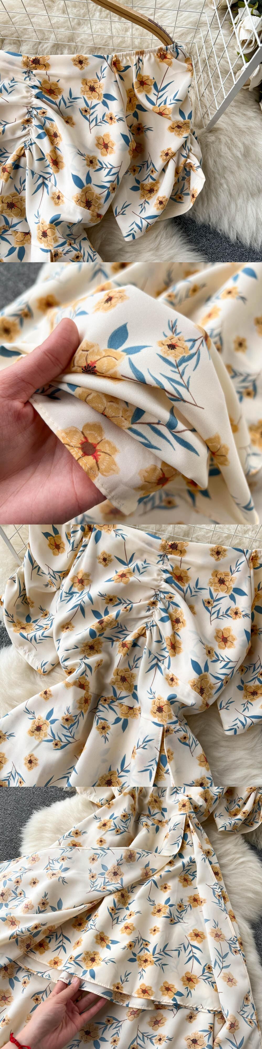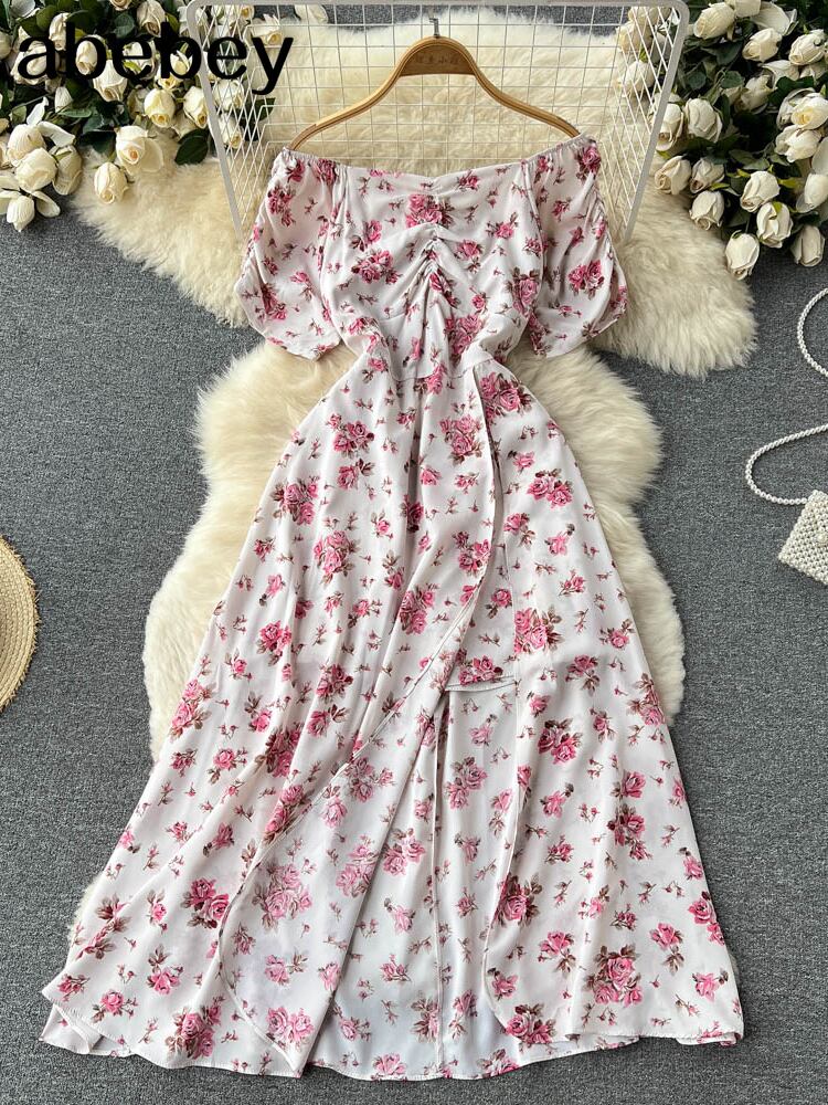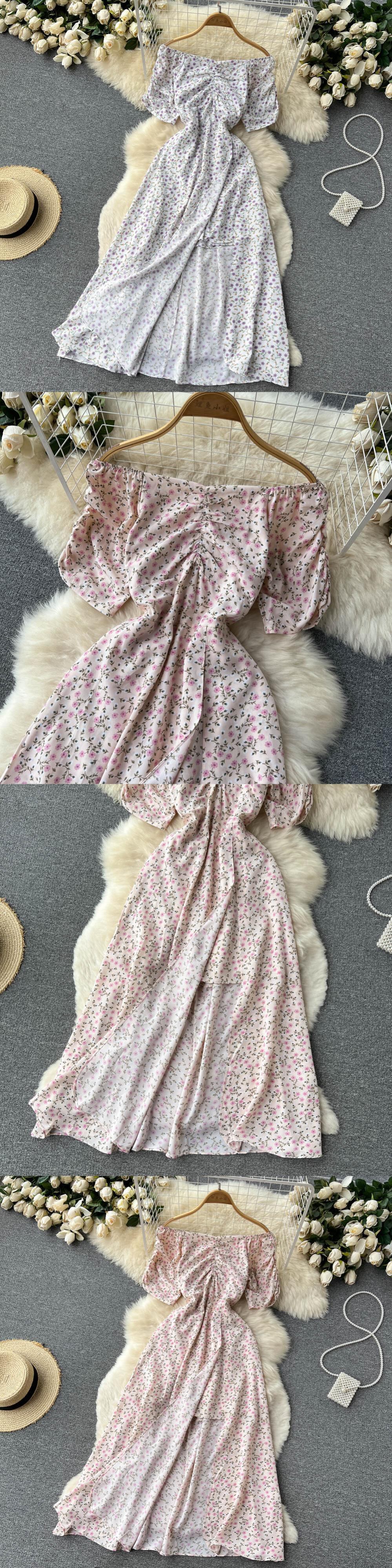 2022年女性フローラルラップドレスオフショルダータイアップフロントフリルミディドレスサマーオフィスレディスラッシュネックプリントラインドレス 夏物 花柄 Aライン 会社 学校 通勤や通学にも Abe29862170158