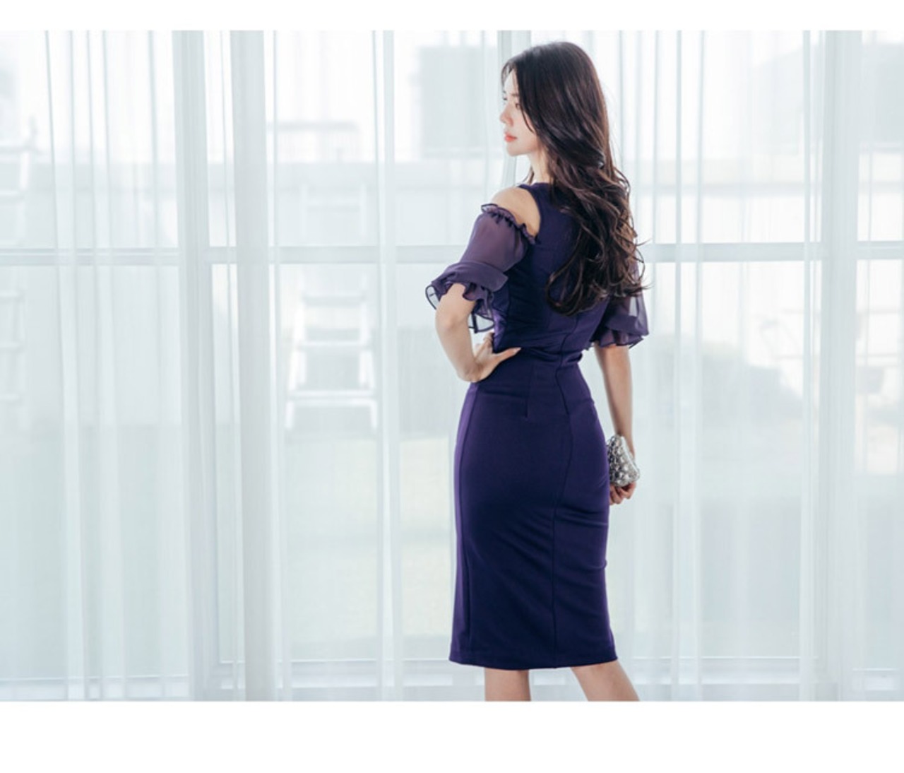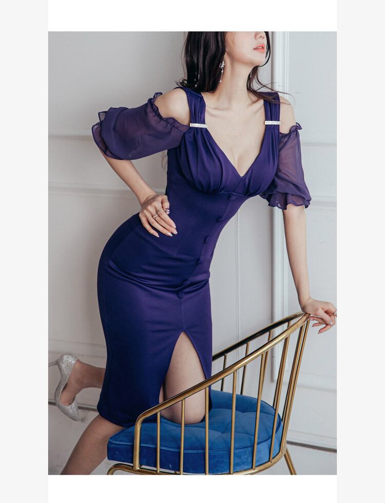 2020夏のセクシーなパーティーシース女性セクシーなオフショルダーVネックパッチワークメッシュスリムペンシルパープルニードレス サマー 夏物 Rhc11814425000